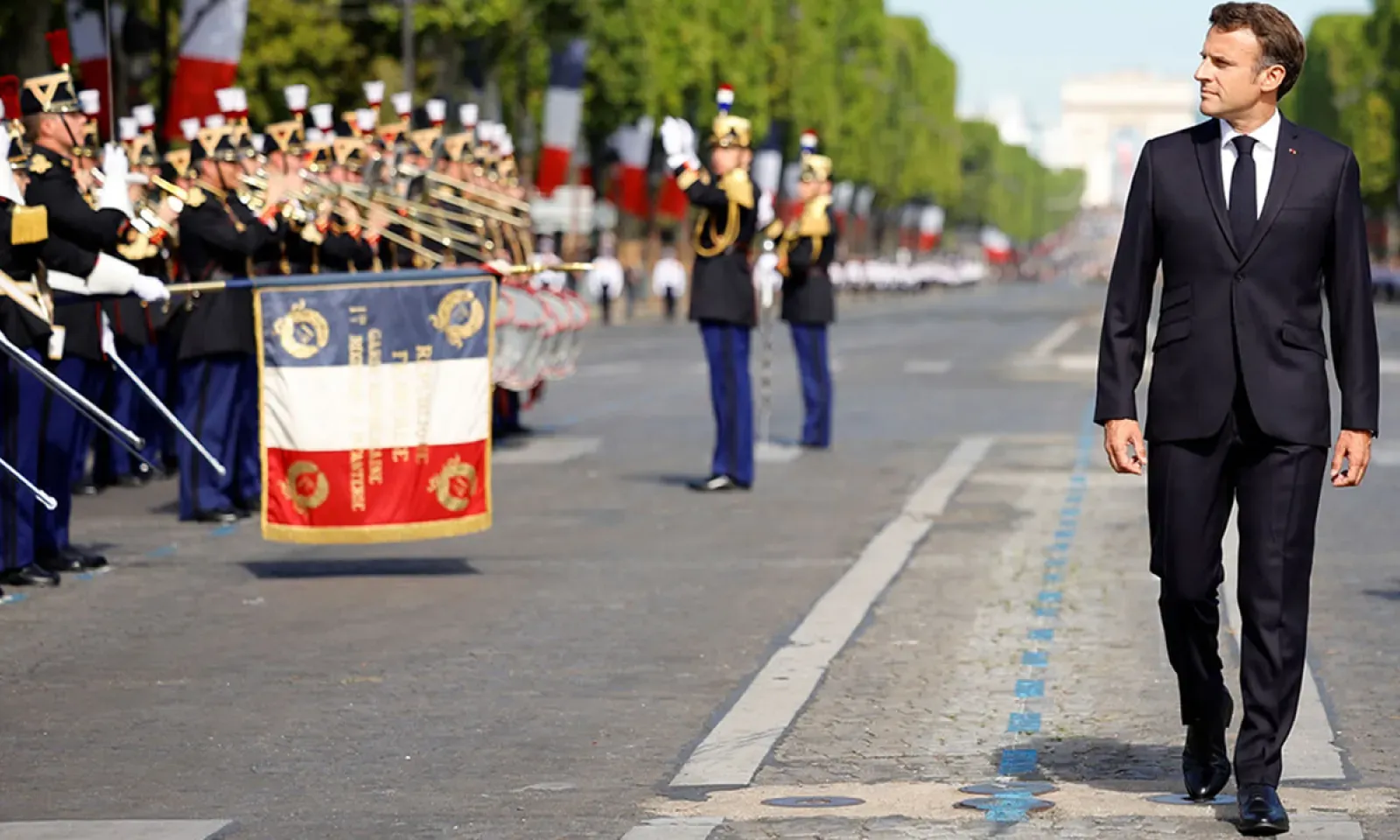 Le président Emmanuel Macron avait auparavant passé en revue les troupes sur la prestigieuse avenue des Champs-Elysées à bord d'un véhicule militaire, sous un soleil radieux, avant de s'installer à la tribune sur la place de la Concorde en compagnie des plus hauts dignitaires de l'Etat.