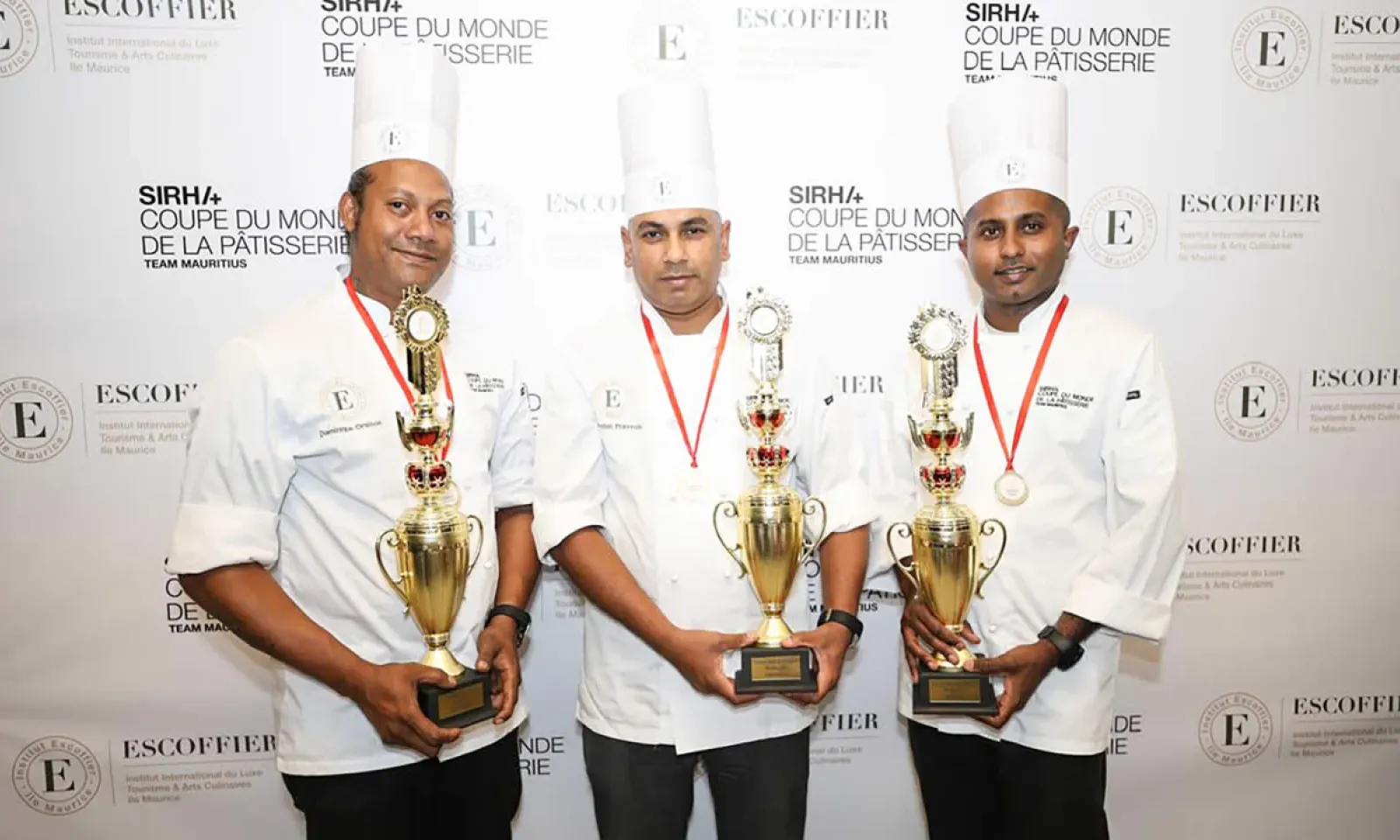 Cette compétition, véritable vitrine du savoir-faire sucré mauricien, a réuni au sein de l’Institut Escoffier les meilleurs talents de l’île. Durant une journée d’épreuves placées sous le signe de la rigueur et de la créativité, les candidats ont rivalisé d’audace pour séduire un jury composé de professionnels reconnus du secteur. À l’issue de ce marathon gourmand, trois pâtissiers se sont imposés par leur précision, leur sens de l’esthétique et leur maîtrise des saveurs.