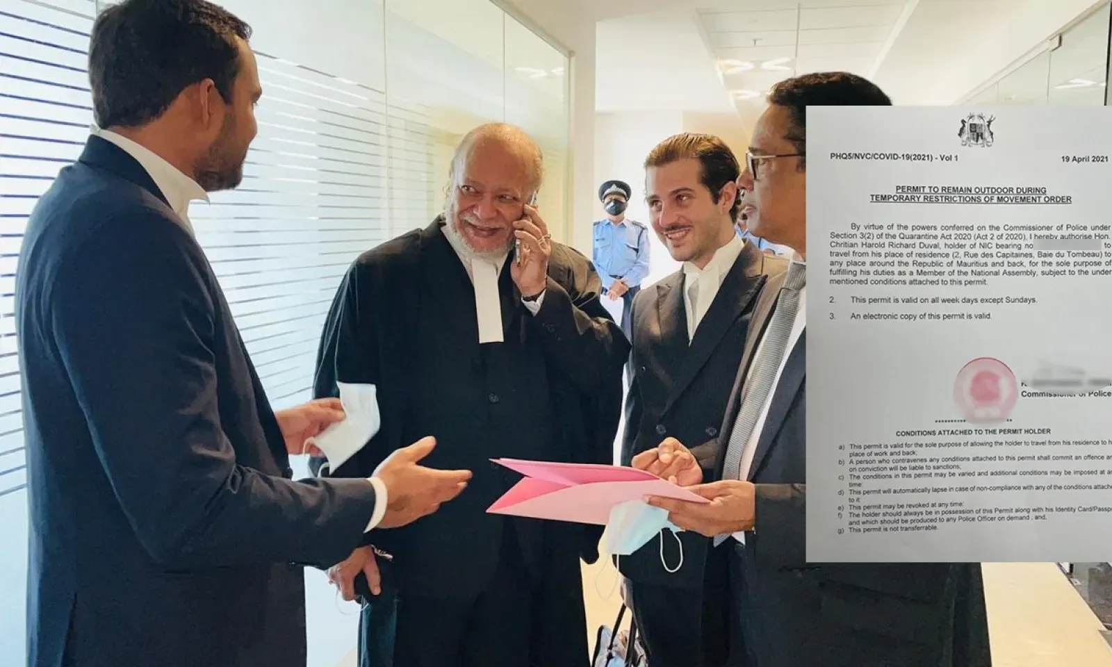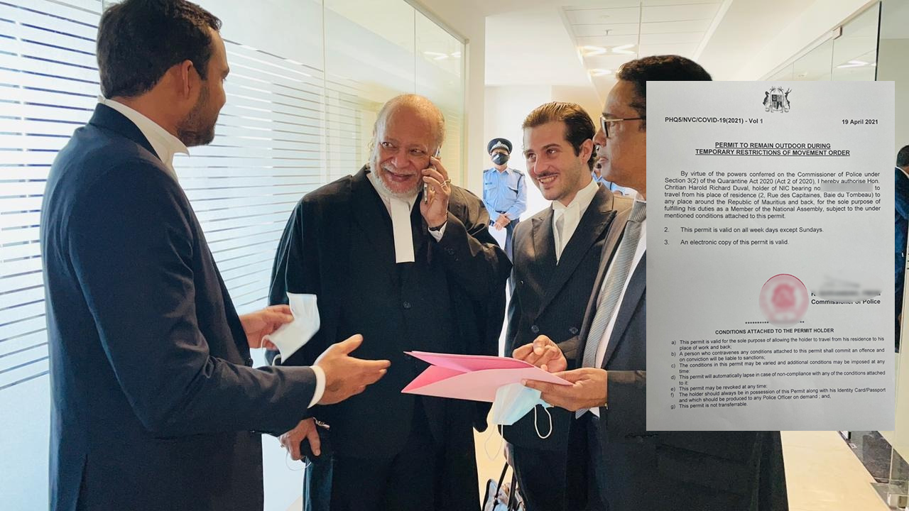 Le député de l’opposition, Richard Duval, pourra se déplacer dans l’exercice de ses fonctions. Cela, en vue de remplir son devoir envers ses mandants. Ce matin en Cour suprême, Me Yan Jean Louis, Acting Assistant Parliamentary Counsel et représentant le Premier ministre, Pravind Jugnauth, a informé le Chef juge Asraf Caunhye, qu’un Work Access Permit (WAP) a été accordé par la police à Richard Duval.