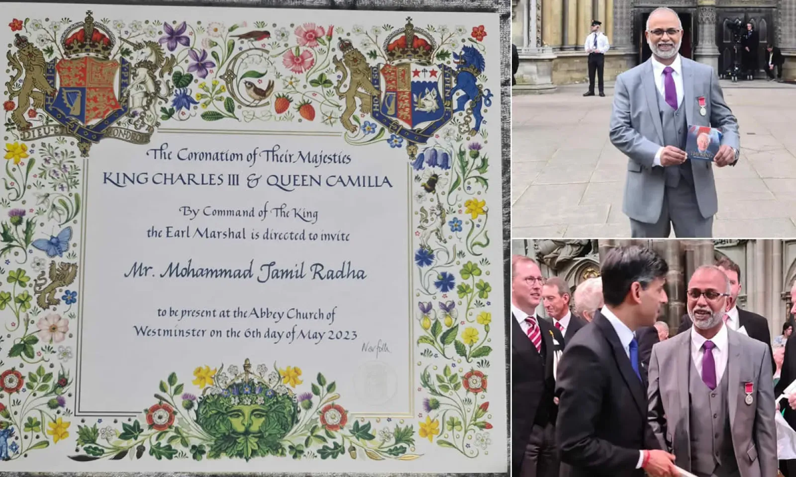 Le jour du couronnement, Jamil Radha est arrivé tôt à l’abbaye Westminster et il a été émerveillé par la perfection de l’organisation de l’événement. Il a eu la chance de rencontrer de nombreuses personnalités éminentes, dont le Premier ministre britannique Rishi Sunak, l’actrice Emma Thompson et le Premier ministre de l’Écosse Humza Yousaf. En outre, il a vu des membres de la famille royale tels que le Prince William et son épouse Kate, ainsi que des dirigeants internationaux, notamment le président français Emmanuel Macron et la First Lady américaine Jill Biden.