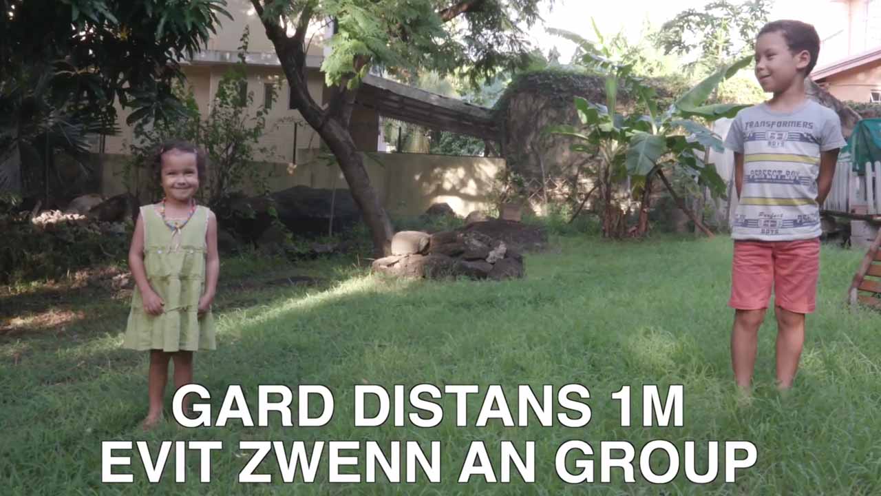«Anou kas lasenn transmision viris-la». Il s'agit d'une video d'une minute, réalisée par la Fondation projet de société. Cette vidéo est en circulation sur Facebook. Les images encouragent les Mauriciens à adopter au quotidien des simples gestes qui peuvent leur permettre de se protéger contre le Covid-19.