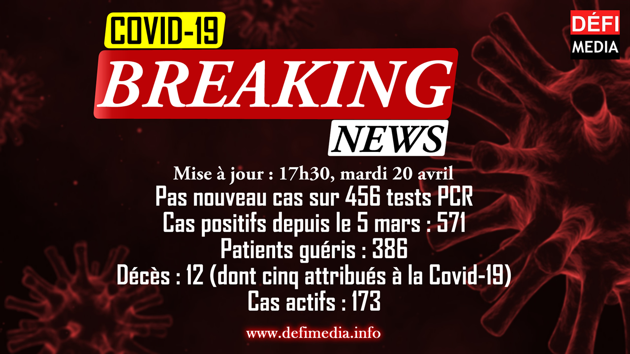 456 tests PCR ont été analysés à 17 h ce mardi 20 avril. Les résultats sont tous négatifs. C’est ce que précise un communiqué du ministère de la Santé émis cet après-midi.