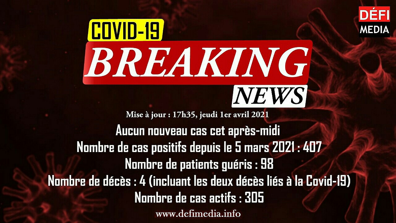 Soulignons que 11 nouveaux cas positifs à la Covid-19 ont été enregistrés dans la soirée du mercredi 31 mars. Ces cas ont été annoncés ce matin par le ministère de la Santé.