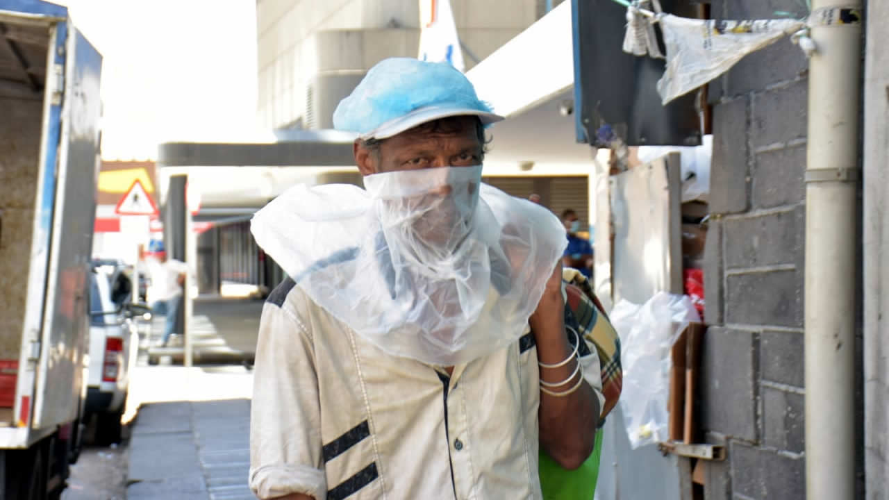 En ce moment, tous les moyens sont bons pour se protéger du coronavirus, comme en témoigne cette photo prise à Port-Louis ce vendredi 20 mars.