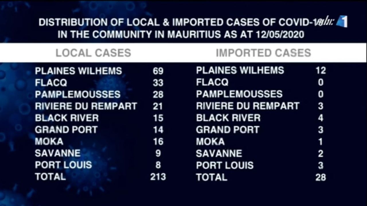 En ce qui concerne les cas importés, 12 sont détectés dans les hautes Plaines-Wilhems et 3 à Port-Louis.