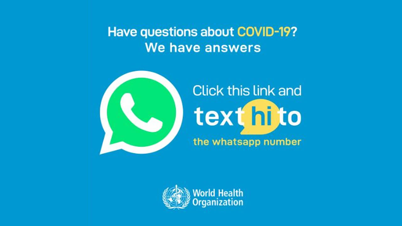 « Ce service d’information à portée des mains est accessible par un lien qui ouvre une conversation sur WhatsApp. Les utilisateurs peuvent simplement taper « salut » ou « Hi » pour activer la conversation, en invitant un menu d'options qui peuvent aider à répondre à leurs questions sur COVID- 19. »
