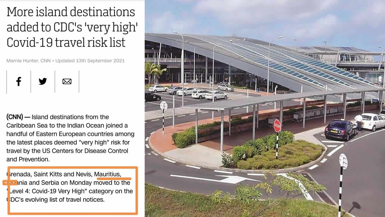 Le centre américain de contrôle des maladies et de la prévention (CDC) a recommandé aux voyageurs d’éviter de se rendre à Maurice. Cela, après avoir intégré l’île à la liste des pays de niveau 4 en termes de propagation de la Covid-19, le lundi 13 septembre. Un développement qui intervient à deux semaines de la grande réouverture des frontières à Maurice.