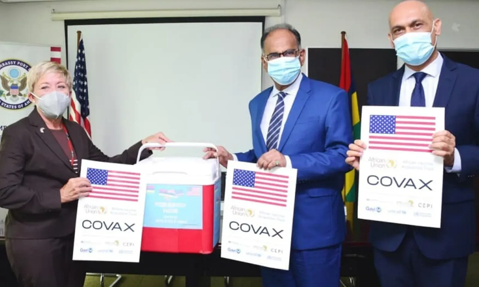 Le don de vaccin a été symboliquement remis au ministre des Affaires étrangères, Alan Ganoo, par la chargée d’affaires à l’ambassade américaine à Maurice, Judes E. DeBaere, en présence du ministre de la Santé, Kailesh Jagutpal, le UN Resident Coordinator pour Maurice et des Seychelles, Christine Umutoni, et le représentant de l’Organisation mondiale de la Santé à Maurice, le Dr Laurent Musango.