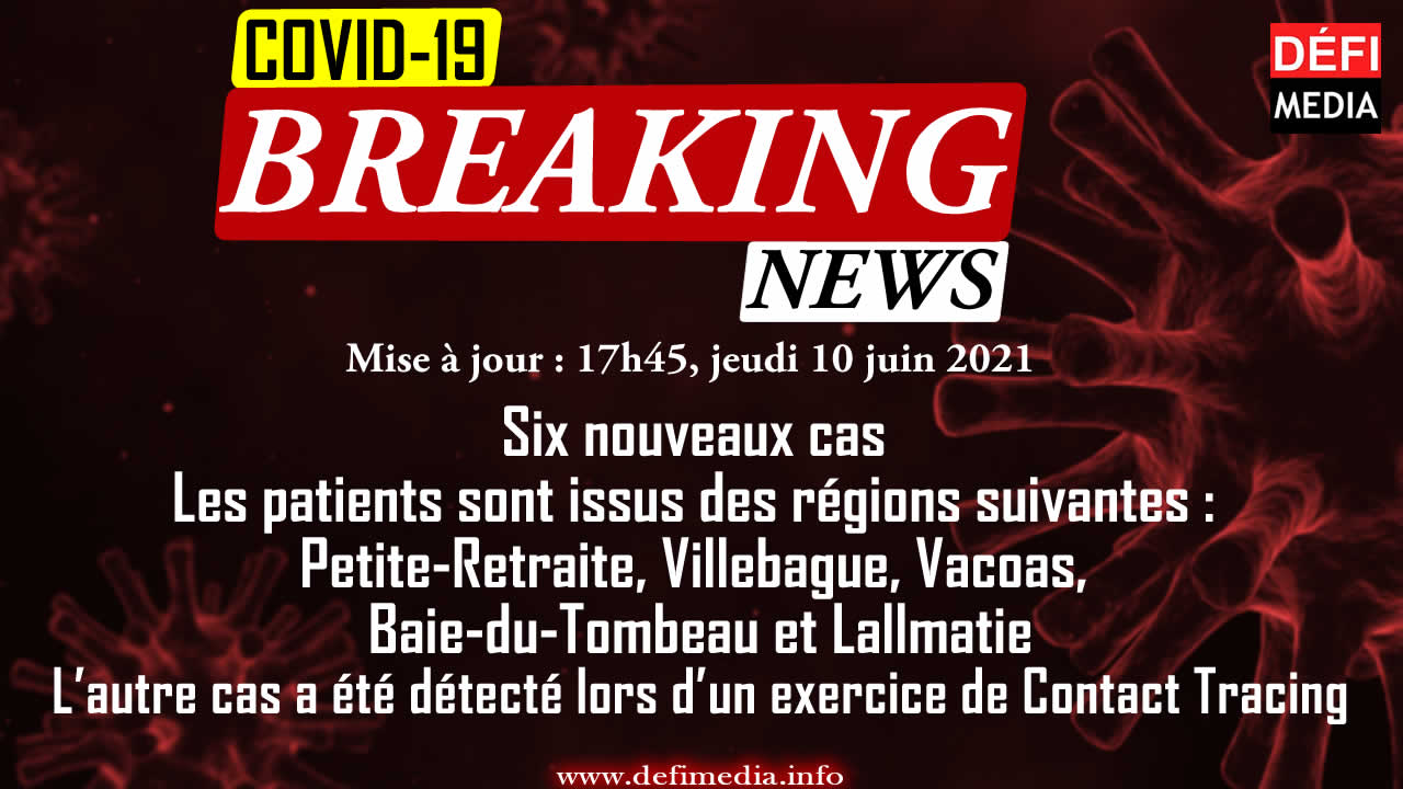 Six cas positifs à la Covid-19 ont été détectés ce jeudi après-midi 10 juin sur 1 774 tests PCR. C’est ce qui ressort d’un communiqué émis par le ministère de la Santé.