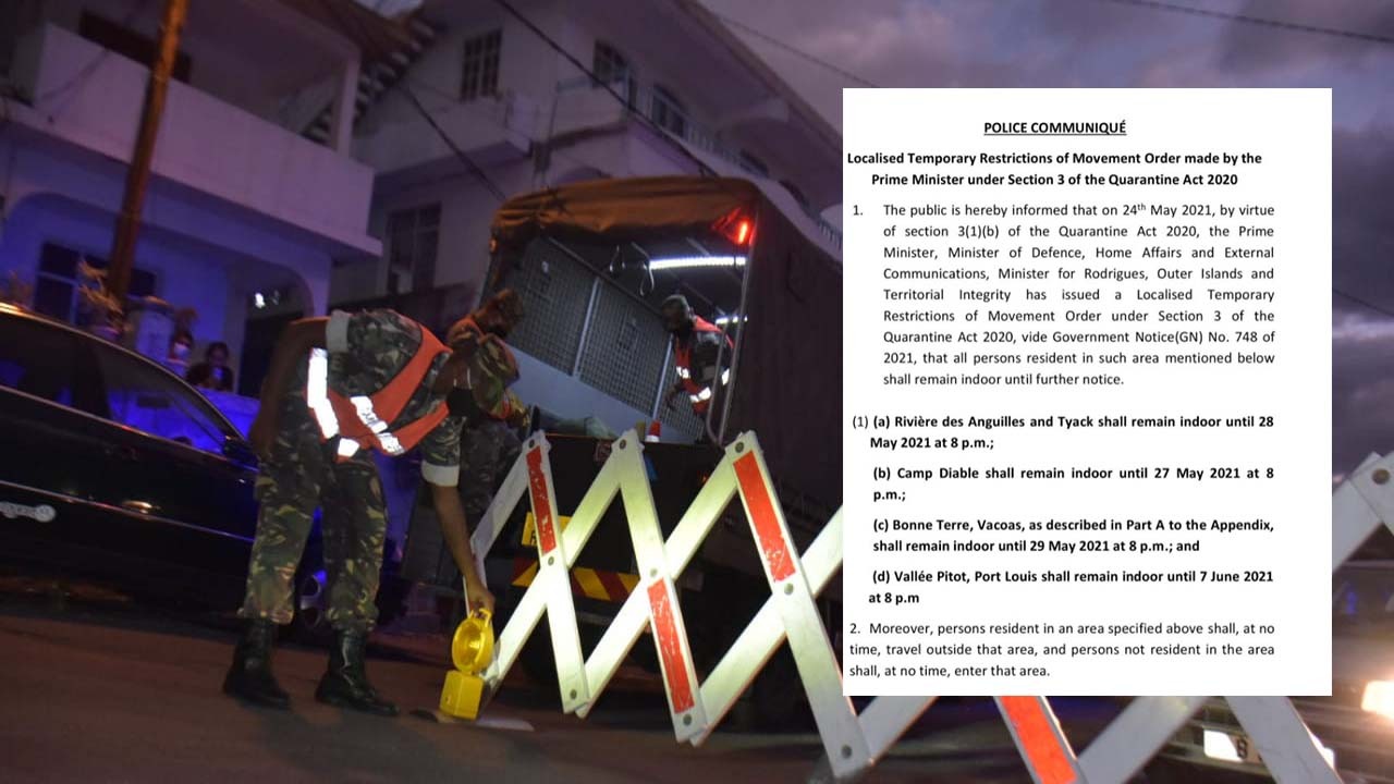 Information communiquée ce mardi matin : Vallée-Pitot reste en zone rouge jusqu’au 7 juin 2021 ; Rivière-des-Anguilles jusqu’au 28 mai ; Camp-Diable jusqu’au 27 mai et Bonne-Terre jusqu’au 29 mai. C’est ce qui ressort dans un communiqué émis par la police.
