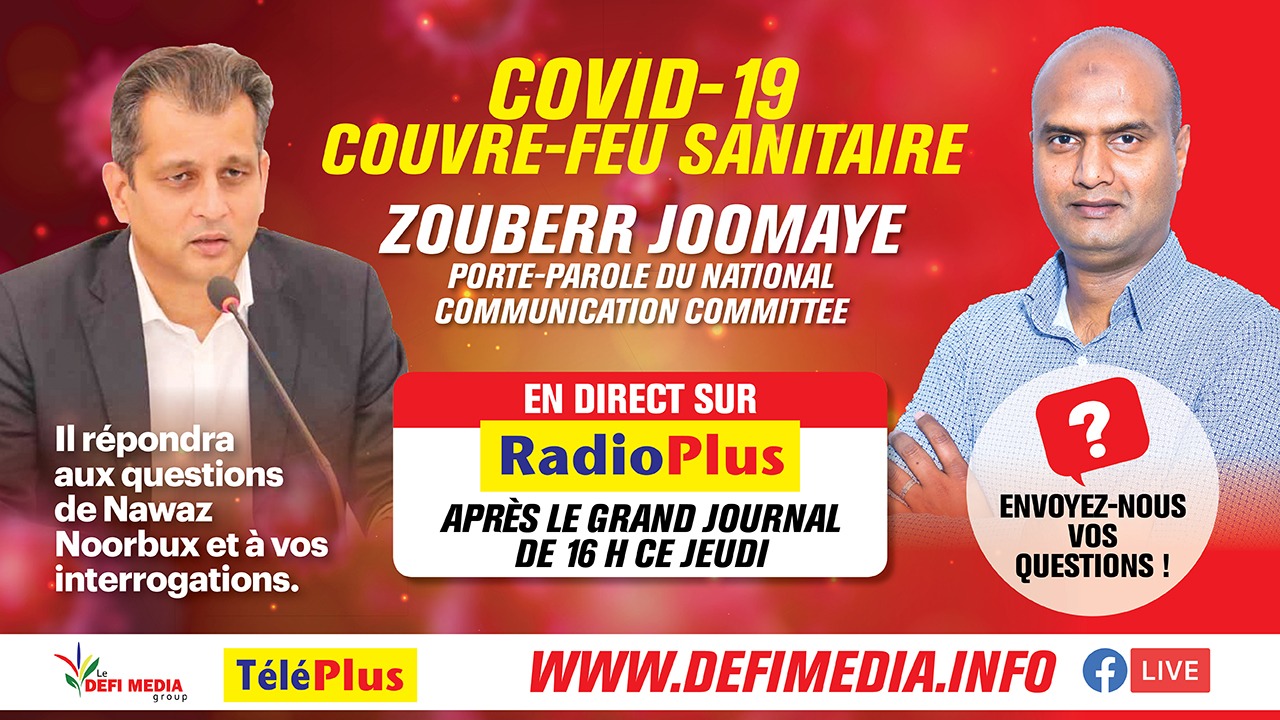Zouberr Joomaye, porte-parole du National Communication Committee, sera en direct sur Radio Plus, juste après le Grand Journal de 16 h ce jeudi 2 avril
