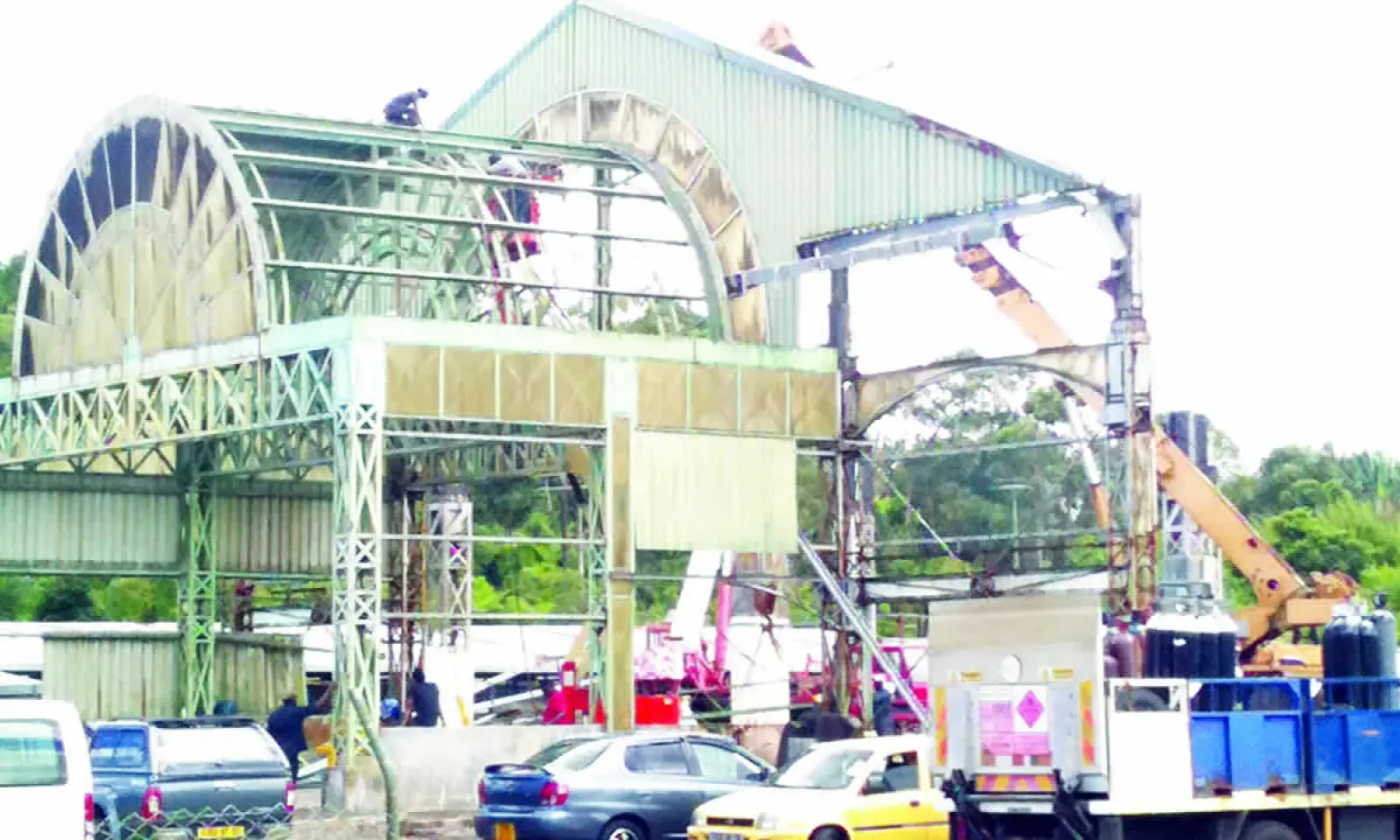 Le démantèlement de la vieille structure métallique rouillée et menaçante pour la sécurité du public est pratiquement achevé. Les travaux avancent à grands pas et se poursuivent même pendant que se tenait la foire samedi.