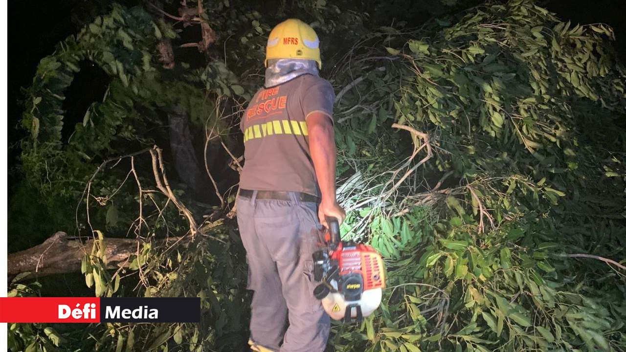 Les sapeurs-pompiers des Casernes de Piton sont en alerte en cette période cyclonique. À 21 h, ils avaient effectué deux sorties pour déblayer la route après des chutes d'arbres.