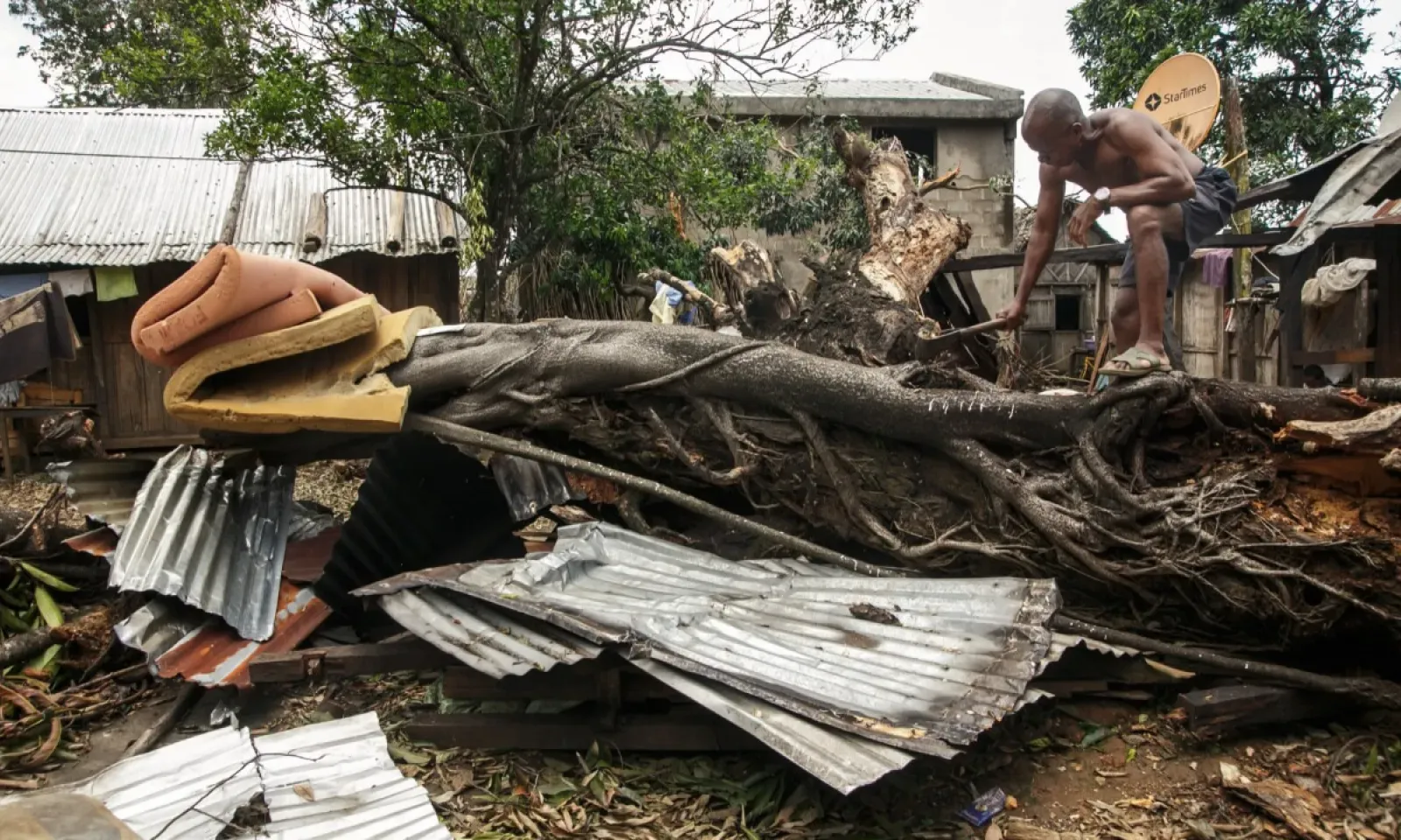 Dans la ville côtière de Mananjary, épicentre du cyclone, les habitants ont commencé à déblayer les routes jonchées de débris et de branches d'arbres. Quelques bâtiments penchés, poussés par le vent, sont restés debout comme par miracle. La plupart des maisons ont été soufflées.