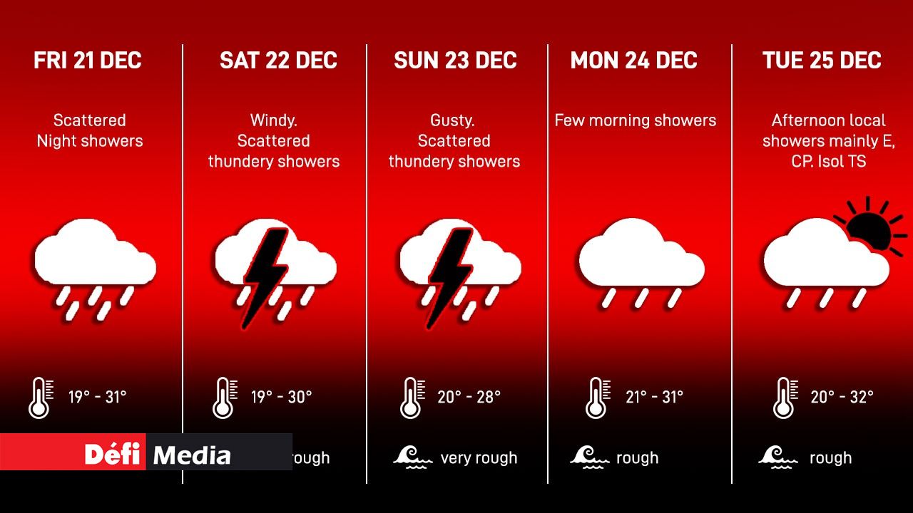 Ci-dessous les prévisions de la station de Vacoas jusqu'au mardi 24 décembre :