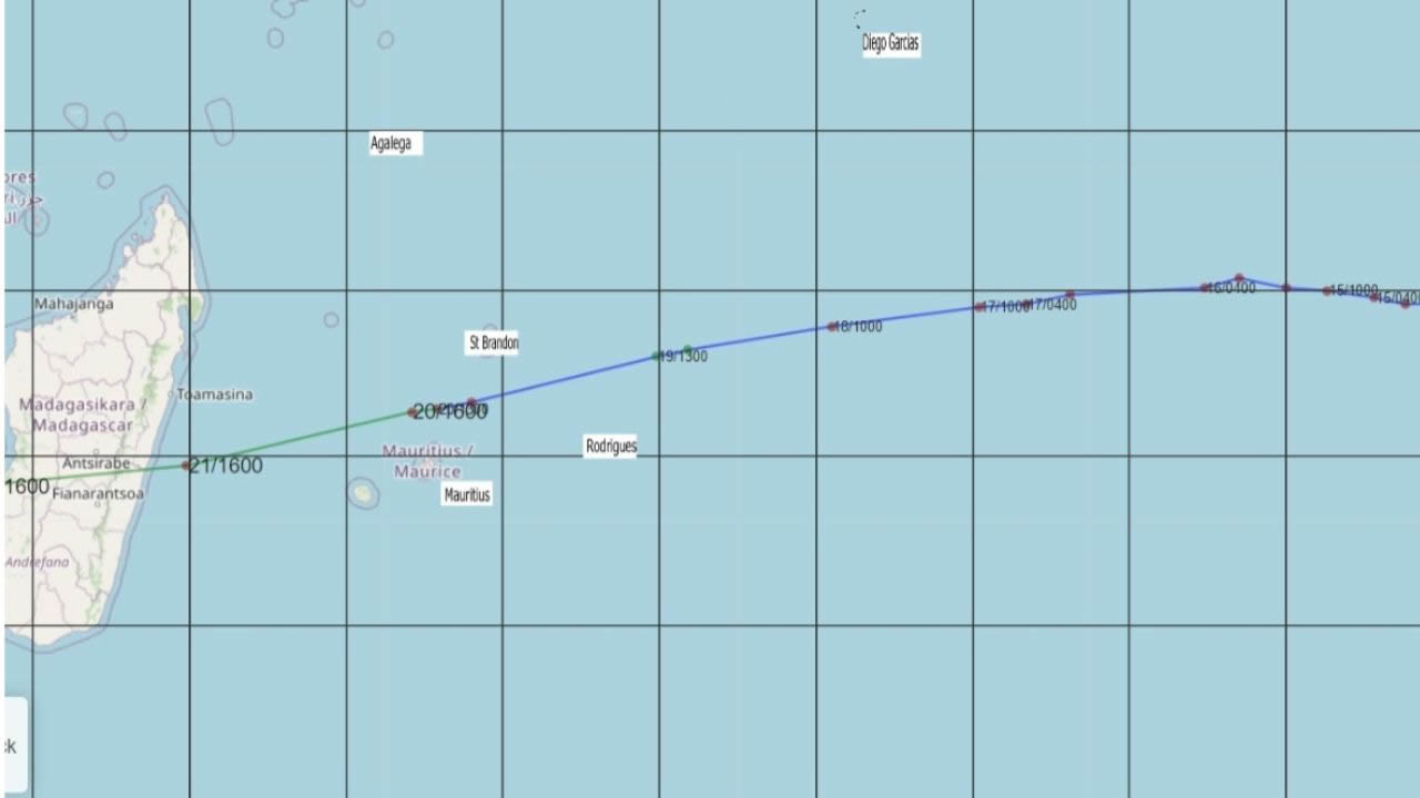Selon le bulletin de la station météorologique de Vacoas, Freddy se déplace vers l'ouest sud-ouest à une vitesse d'environ 30 km/h.