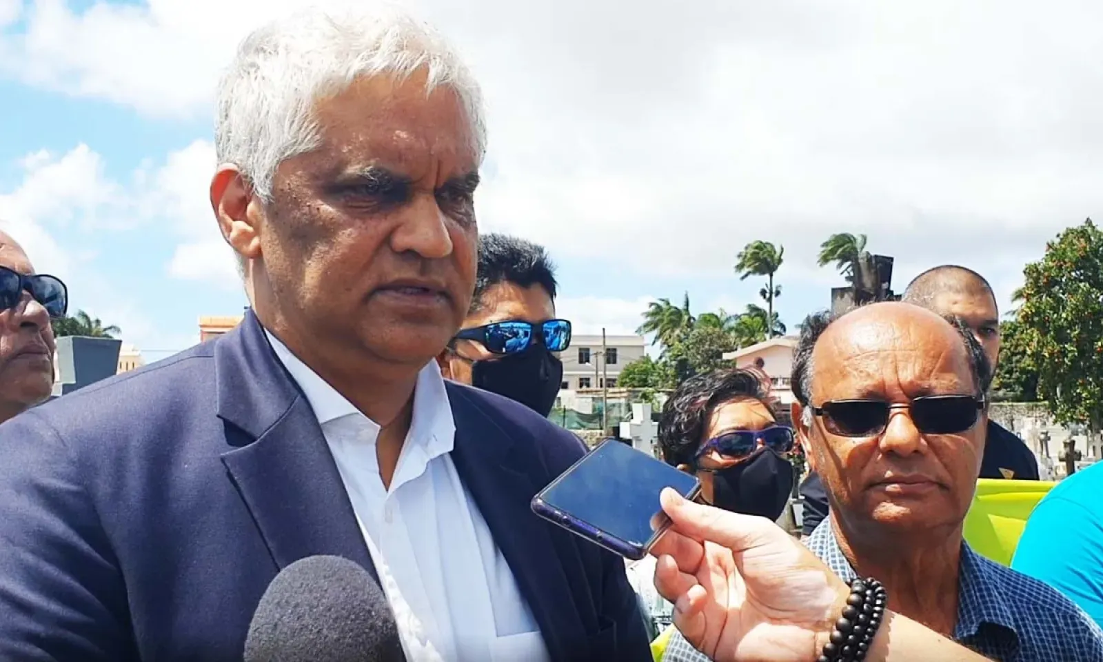 L'avocat procédait à un dépôt de gerbes sur la tombe d’Emmanuel Anquetil au cimetière Saint-Jean, à Quatre-Bornes.