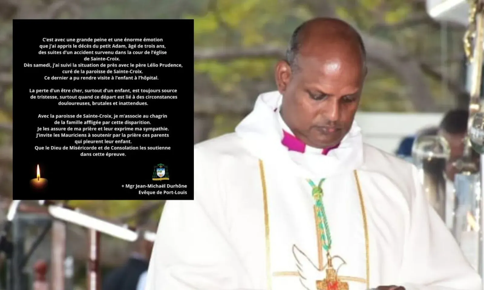 Mgr Jean Michaël Durhône, évêque de Port-Louis, invite les Mauriciens à soutenir par la prière la famille du petit Adam, 3 ans, décédé ce mardi 20 août.