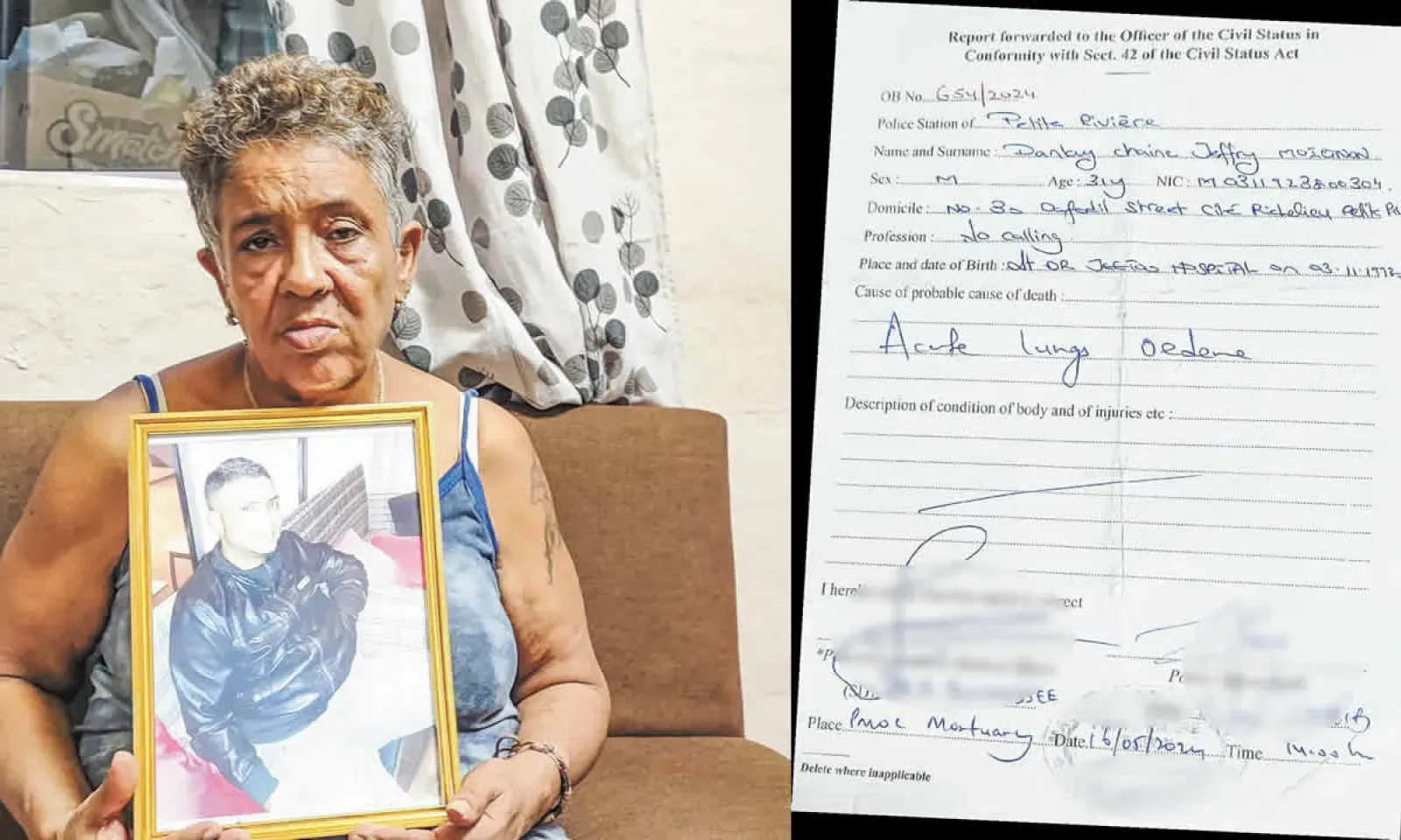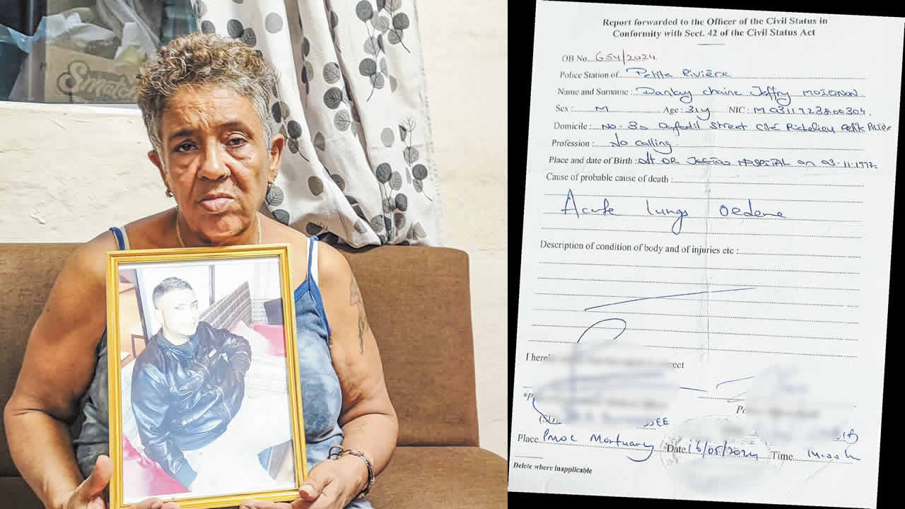 Le jeune homme est mort dans des circonstances pour le moins « troublantes », le jeudi 16 mai 2024, soit six jours seulement après son admission à l’hôpital Brown-Séquard de Beau-Bassin. Tout ce qu’il laisse derrière lui, c’est une mère meurtrie et une multitude de questions qui sont, pour l’instant, sans réponses. Que lui est-il arrivé ? À quelle heure est-il mort ? Pourquoi l’accès à sa dépouille a-t-il été, dans un premier temps, refusé à ses deux sœurs ? Mary Alberte veut la vérité sur le décès de son fils.