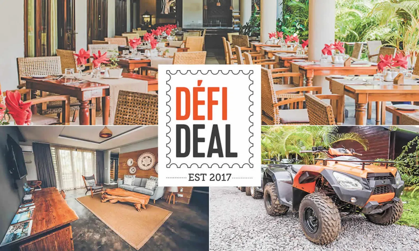 Défi Deal, plateforme de réservation en ligne, permet aux Mauriciens et résidents de bénéficier d’offres exceptionnelles sur diverses prestations, notamment hôtels, activités terrestres et aquatiques, soins de bien-être et de beauté, et restaurants. En famille, entre amis ou en couple, profitez de forfaits uniques en vous connectant sur www.defideal.mu ou en appelant sur le 210 5300 ou le 5483 4583, ou encore en envoyant un mail sur [email protected].