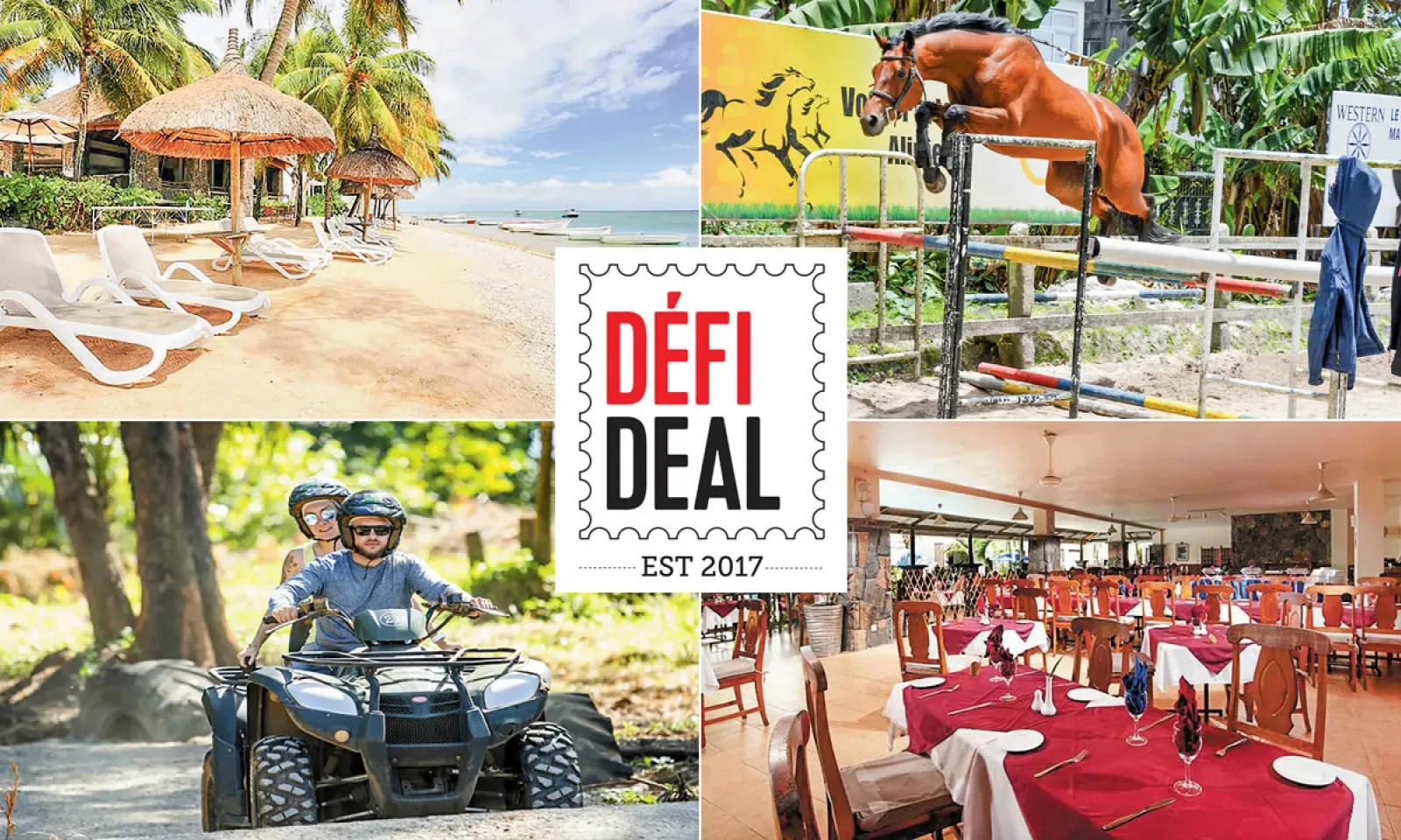 Défi Deal, plateforme de réservation en ligne, permet aux Mauriciens et résidents de bénéficier d’offres exceptionnelles sur diverses prestations, notamment hôtels, activités terrestres et aquatiques, soins de bien-être et de beauté, et restaurants. En famille, entre amis ou en couple, profitez de forfaits uniques en vous connectant sur www.defideal.mu ou en appelant sur le 210 5300 ou le 5 483 45 83 ou encore en envoyant un mail sur [email protected].