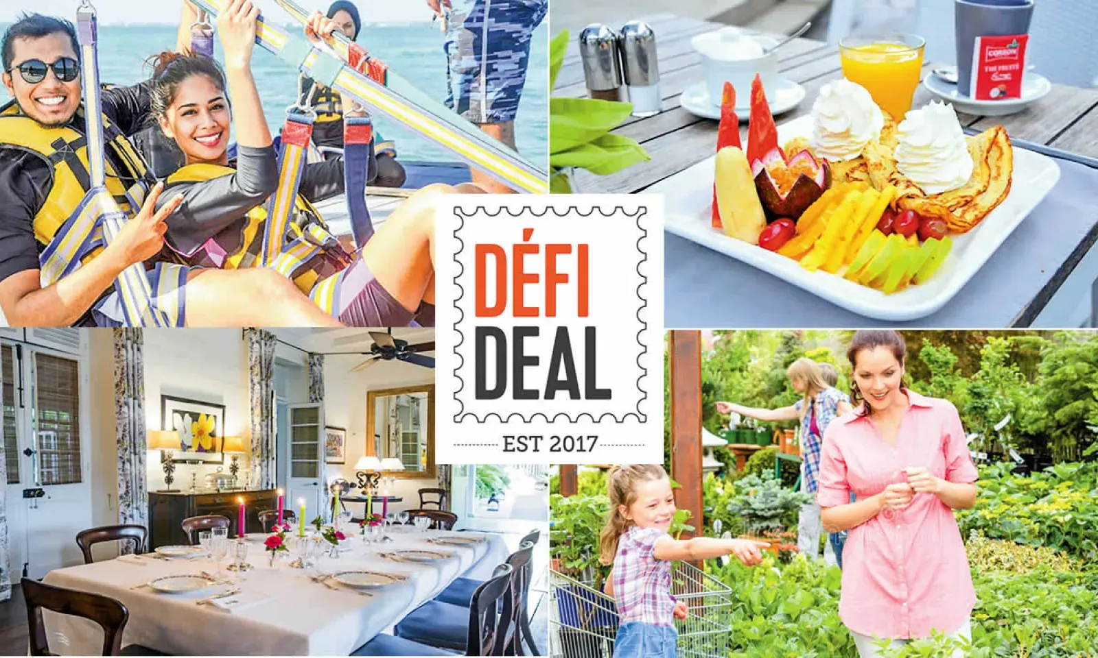 Défi Deal, plateforme de réservation en ligne, permet aux Mauriciens et résidents de bénéficier d’offres exceptionnelles sur diverses prestations, notamment hôtels, activités terrestres et aquatiques, soins de bien-être et de beauté, et restaurants. En famille, entre amis ou en couple, profitez de forfaits uniques en vous connectant sur www.defideal.mu ou en appelant sur le 210 5300 ou le 5483 4583, ou encore en envoyant un mail sur [email protected].