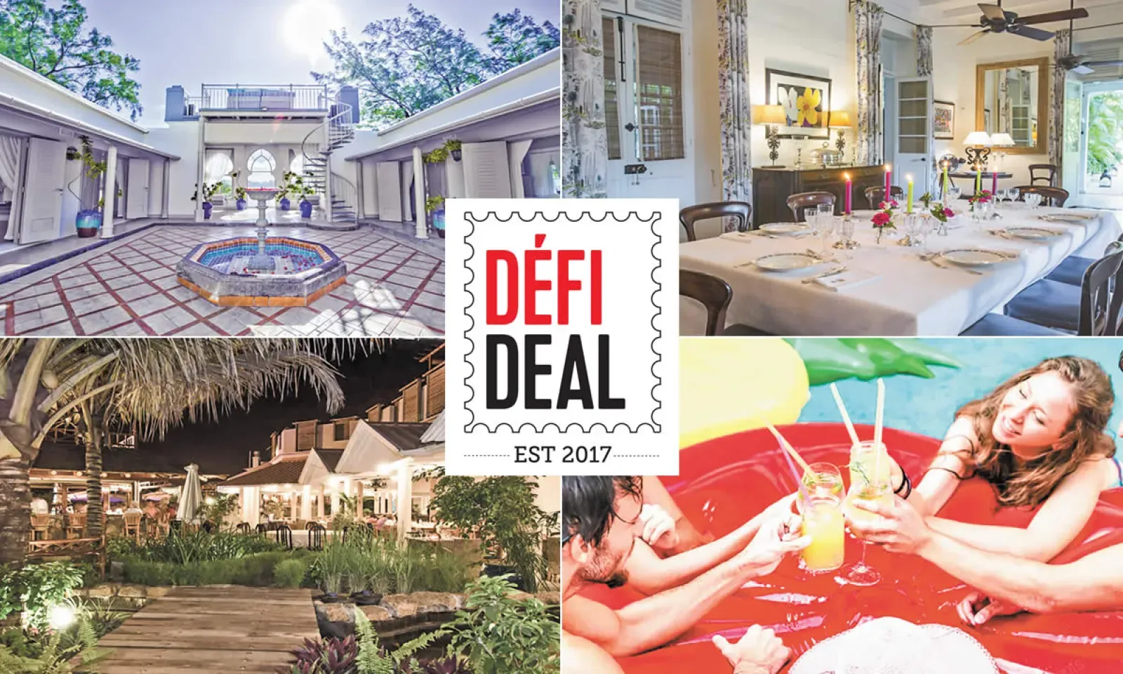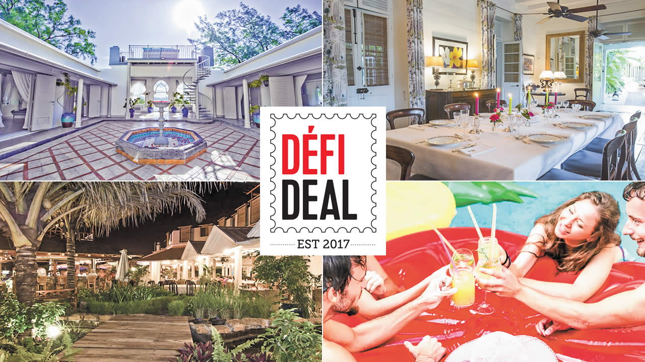Défi Deal, plateforme de réservation en ligne, permet aux Mauriciens et résidents de bénéficier d’offres exceptionnelles sur diverses prestations, notamment hôtels, activités terrestres et aquatiques, soins de bien-être et de beauté, et restaurants. En famille, entre amis ou en couple, profitez de forfaits uniques en vous connectant sur www.defideal.mu ou en appelant sur le 210 5300 ou le 5483 4583, ou encore en envoyant un mail sur [email protected].