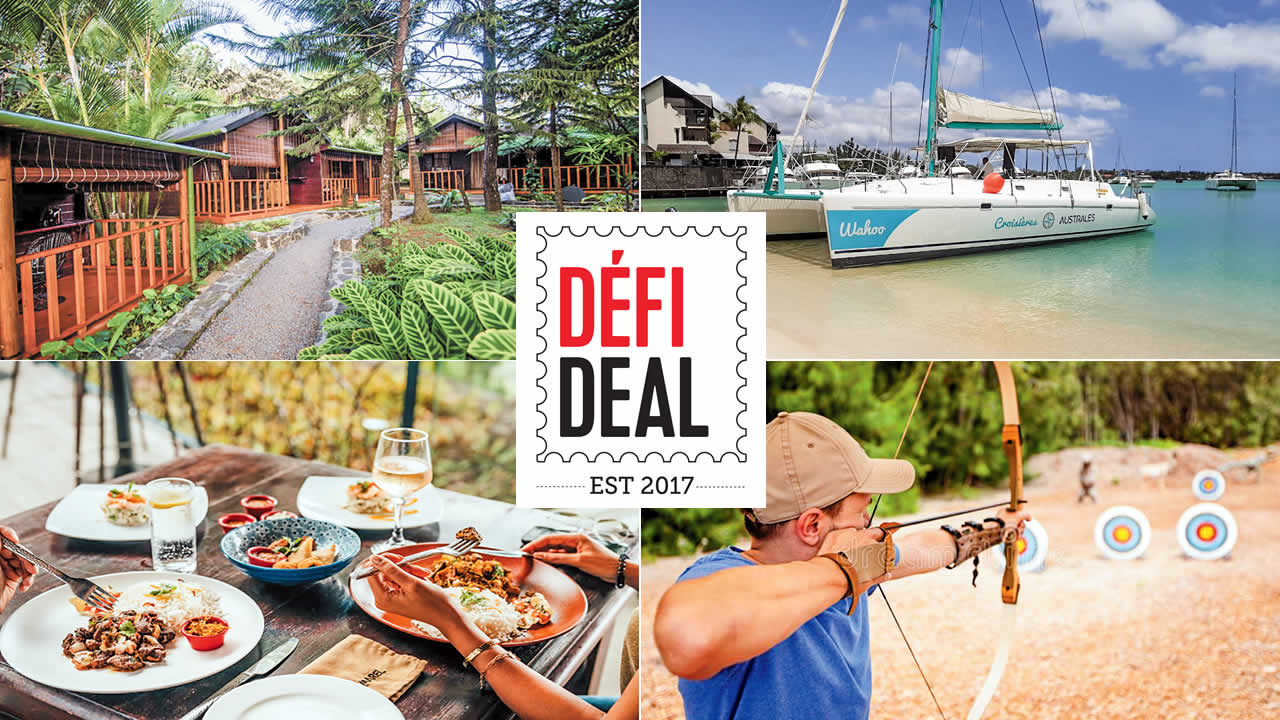 Défi Deal, plateforme de réservation en ligne, permet aux Mauriciens et résidents de bénéficier d’offres exceptionnelles sur diverses prestations, notamment hôtels, activités terrestres et aquatiques, soins de bien-être et de beauté, et restaurants. En famille, entre amis ou en couple, profitez de forfaits uniques en vous connectant sur www.defideal.mu ou en appelant sur le 210 5300 ou le 5483 4583, ou encore en envoyant un mail sur [email protected].