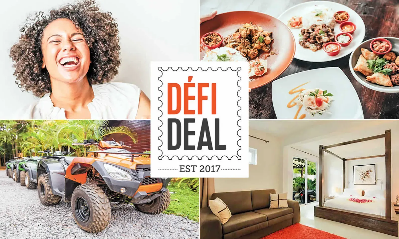 Défi Deal, plateforme de réservation en ligne, permet aux Mauriciens et résidents de bénéficier d’offres exceptionnelles sur diverses prestations, notamment hôtels, activités terrestres et aquatiques, soins de bien-être et de beauté, et restaurants. En famille, entre amis ou en couple, profitez de forfaits uniques en vous connectant sur www.defideal.mu ou en appelant sur le 210 5300 ou le 5483 4583, ou encore en envoyant un mail sur [email protected].