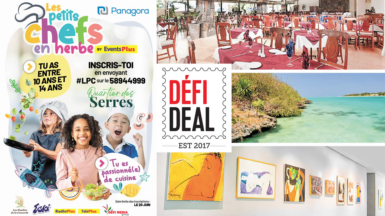 Le Défi Deal, plateforme de réservation en ligne, permet aux Mauriciens et résidents de bénéficier d’offres exceptionnelles sur diverses prestations. Notamment hôtels, activités terrestres et aquatiques, soins de bien-être et de beauté, et restaurants. En famille, entre amis ou en couple, profitez de forfaits uniques en vous connectant sur www.defideal.mu, en appelant sur le 210 5300 ou le 54834583 ou en envoyant un mail sur [email protected].