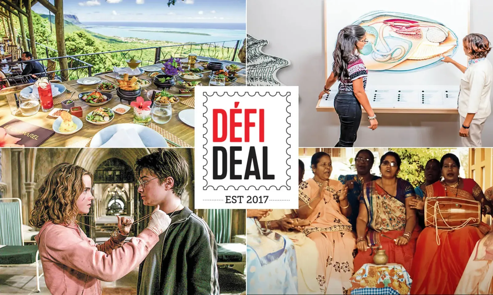 Défi Deal, plateforme de réservation en ligne, permet aux Mauriciens et aux résidents de bénéficier d’offres exceptionnelles sur diverses prestations, notamment des hôtels, activités terrestres et aquatiques, soins de bien-être et de beauté, et restaurants. En famille, entre amis ou en couple, profitez de forfaits uniques en vous connectant sur www.defideal.mu ou en appelant sur le 210 5300 ou le 5 483 45 83 ou encore en envoyant un mail sur [email protected].