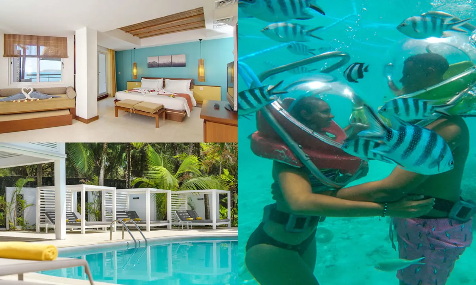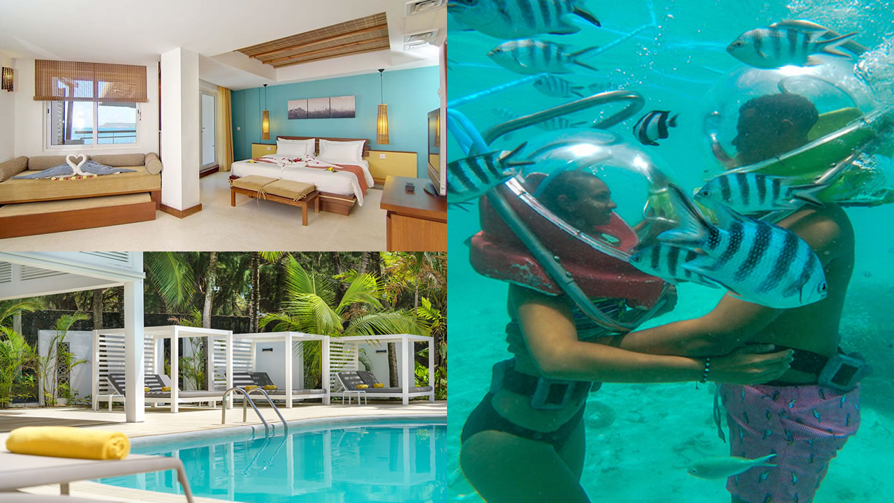 Le Laguna Beach Hotel & Spa situé à Grand-Rivière-Sud-Est, propose un séjour en formule Tout Compris (petit-déjeuner, déjeuner, dîner et boissons à volonté) donnant la possibilité à un enfant (0-4 ans) de séjourner gratuitement. Le forfait tout inclus commence à 14 heures le jour de l’arrivée et se termine à 11 heures le jour du départ. Si le déjeuner est pris le jour du départ, les boissons ne seront fournies que pendant le déjeuner. Un enfant jusqu’à 4 ans séjourne, joue et mange gratuitement, en partageant la chambre des parents. Accès gratuit aux installations de l’hôtel, piscine, centre de fitness et salle de jeux. Le prix pour deux adultes est de Rs 10 000 chambre standard et Rs 11 000 en chambre Deluxe.