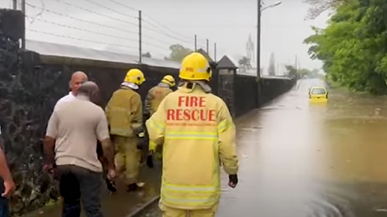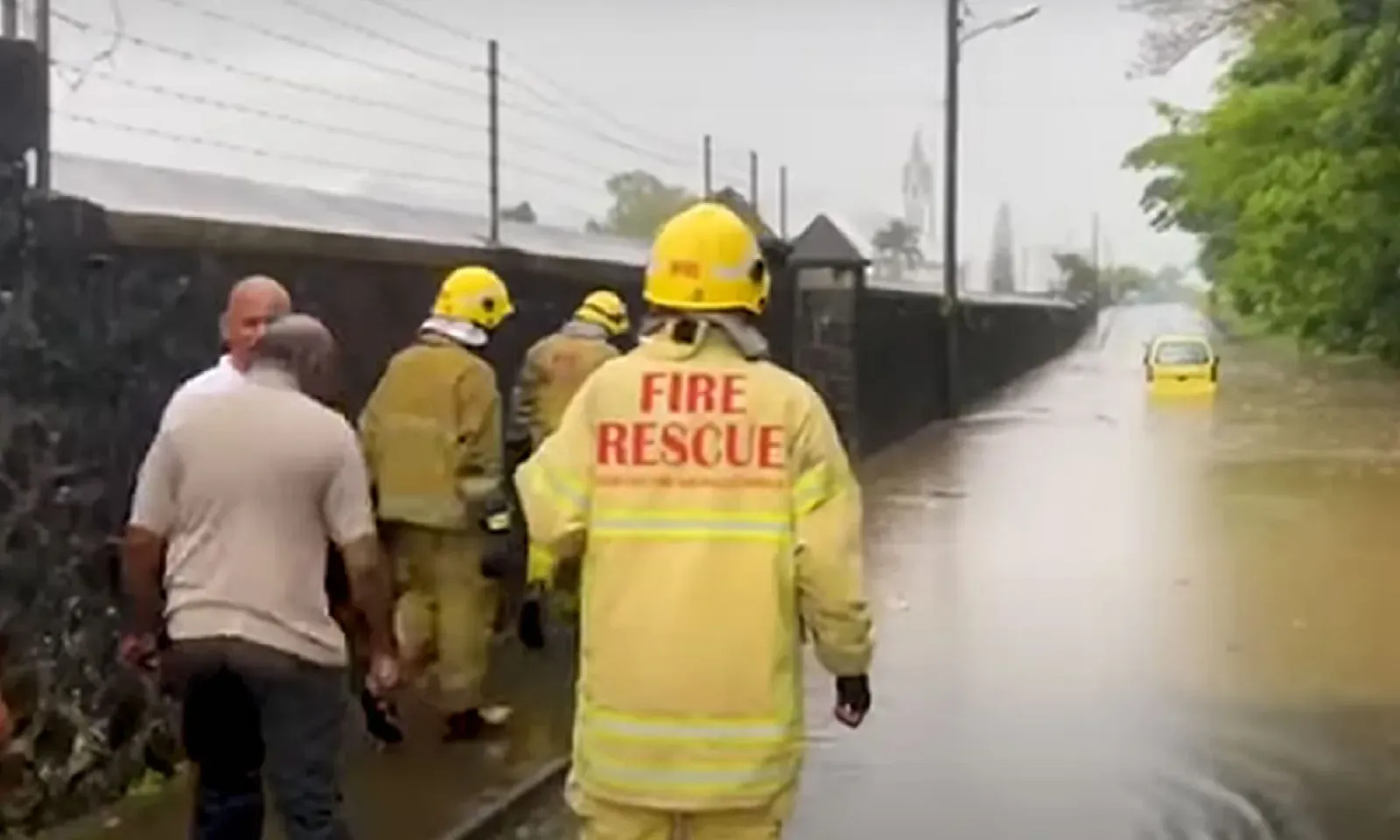 En effet, deux voitures ont été prises au piège par la montée des eaux à St-Jean cet après-midi. Trois personnes ont dû être secourues.