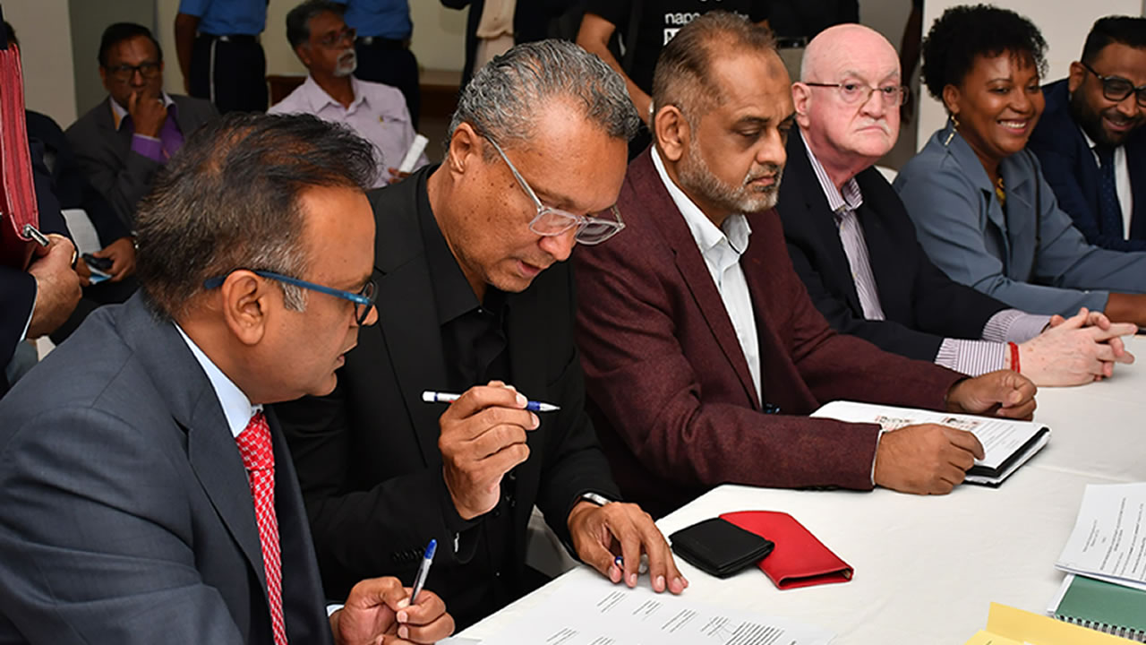 Parmi ceux présents, le président du Parti travailliste (PTr), Patrick Assirvaden, Rajesh Bhagwan et Reza Uteem du MMM, Kushal Lobin et Veronique Leu-Govind de Nouveaux Démocrates et Stephan Gua et Veena Dholah de Rezistans ek Alternativ.