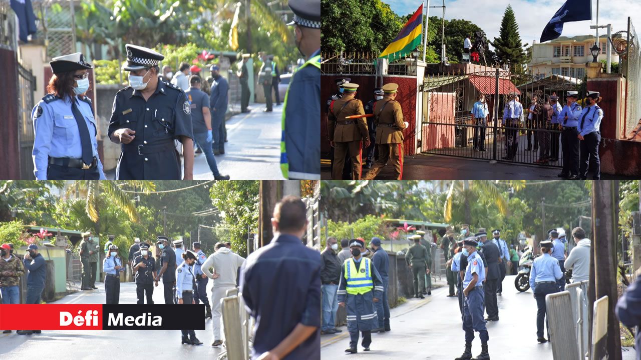 Derniers préparatifs avant les funérailles de sir Anerood Jugnauth prévues à 14 h ce samedi. Des hauts gradés de la police donnaient les dernières instructions à La Caverne, Vacoas, pour s’assurer que la cérémonie funéraire se déroule en conformité avec le protocole sanitaire.