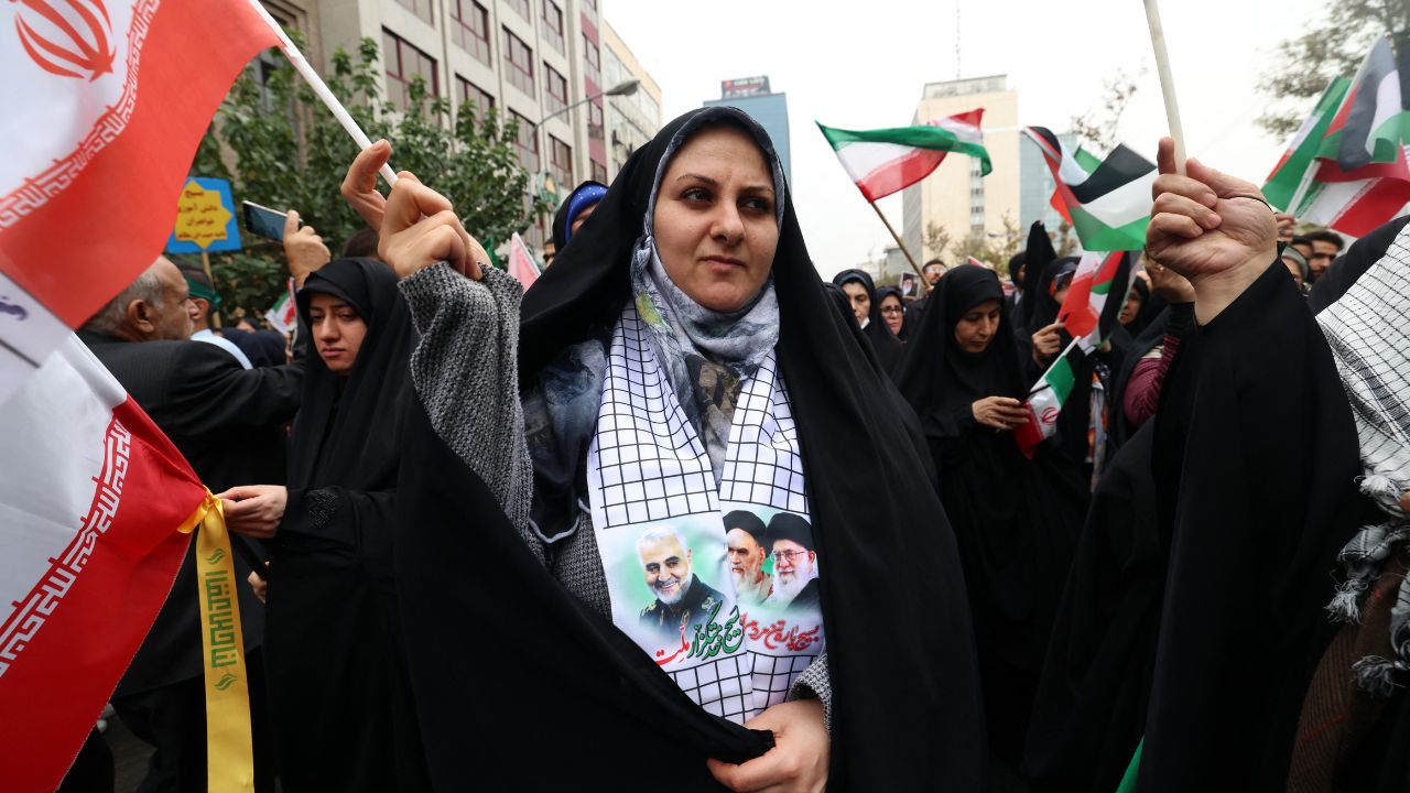 Principal orateur du rassemblement à Téhéran, le président du Parlement, Mohammad Bagher Ghalibaf, a salué l'attaque "déluge d'Al-Aqsa" lancée le 7 octobre par le mouvement islamiste palestinien contre Israël, qui "a changé l'Histoire". Il a dénoncé l'opération militaire menée depuis par les forces israéliennes dans la bande de Gaza en déclarant que "le massacre d'enfants et de femmes" était "le summum du mépris et de l'impuissance".