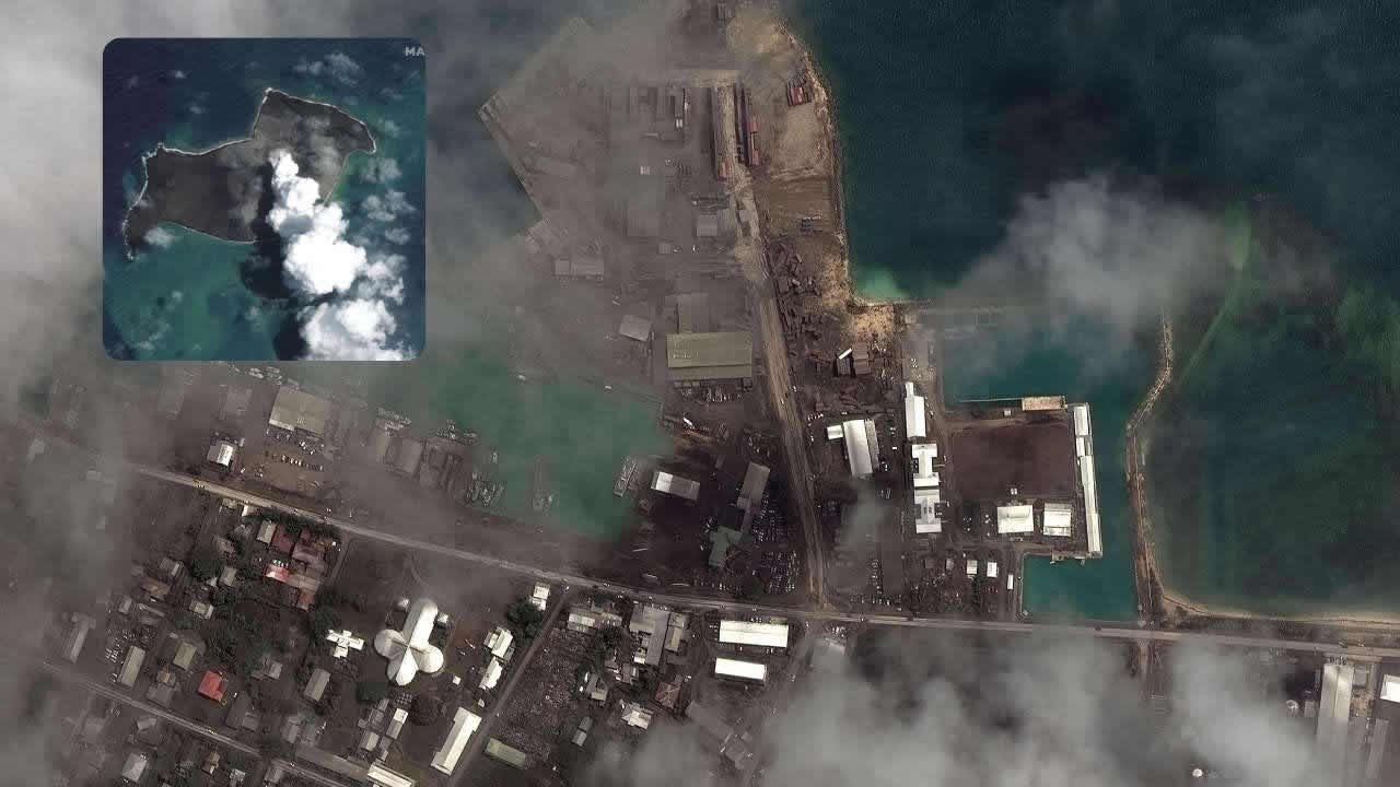 Des images satellites diffusées par le Centre satellitaire des Nations unies (UNOSAT) ont montré les conséquences de l'éruption et du tsunami sur la petite île de Nomuka, l'une des plus proches du volcan Hunga-Tonga-Hunga-Ha'apai.