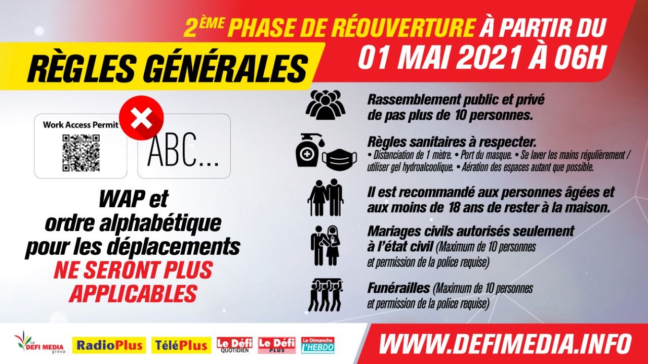 Deuxième phase de réouverture ce samedi 1er mai 2021 sauf dans les cinq villages qui ont décrétés zones rouges vendredi : Tyack, Bénarès, Batimarais, Rivière-des-Anguilles et Saint-Aubin. Voici ce qui est autorisé, restreint ou interdit dans le cadre de cette deuxième phase de réouverture :