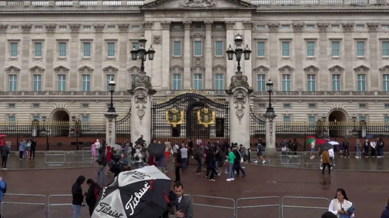 Tôt dans l'après-midi, malgré une pluie battante, admirateurs, touristes et journalistes avaient commencé à se rassembler devant le palais, partageant leur inquiétude sur l'état de santé de la reine Elizabeth II, après un communiqué préoccupant, et leur affection pour une monarque infiniment populaire.