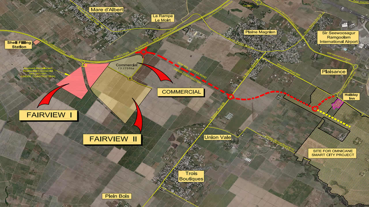 Le site sera également connecté à la nouvelle route d’accès vers l’aéroport qu’Airports of Mauritius Ltd est en train de faire construire. Si la zone est appelée à devenir un grand chantier, il est cependant encore largement inexploité. La majeure partie est encore sous la culture de canne.