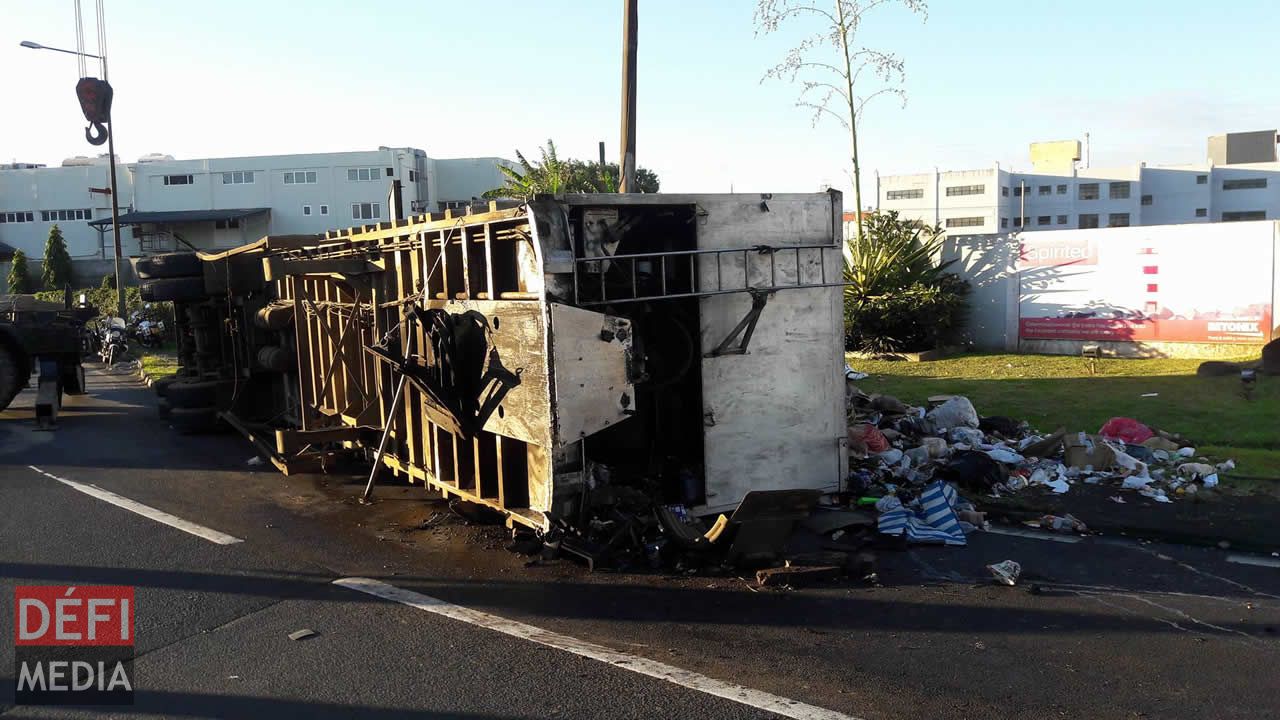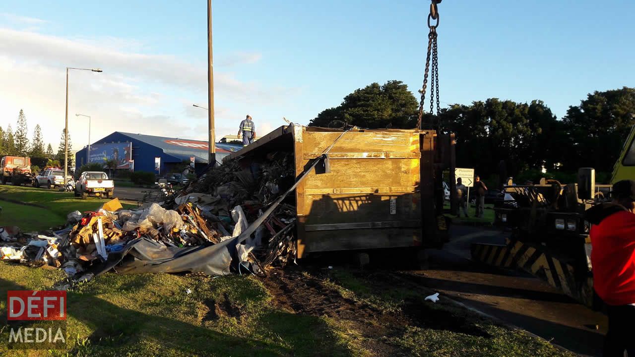 Un camion de ramassage d’ordures s’est renversé vers 16 h 15 dans des circonstances à être déterminées par la police. Aucun blessé n’est à déplorer. Le responsable du camion a dépêché des membres du personnel sur place pour ramasser les déchets. Cet accident de la route a provoqué un embouteillage monstre sur l’autoroute de Trianon à Pont-Fer, Phoenix. Photos envoyées par l’internaute Govin Etwaroo et Sooraj Laljee.