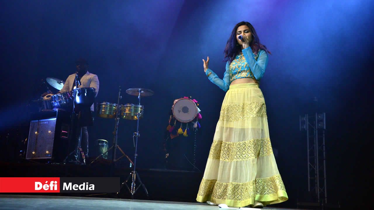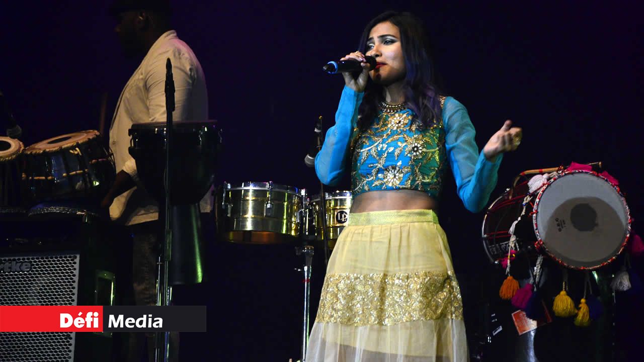 Le coup d’envoi du concert a été donné à 20 h 15. Quand la jeune chanteuse de 25 ans, de sa douce voix, commence à chanter Dil Yeh Bechein Hai, sous les feux des projecteurs, le public lui réserve un tonnerre d’applaudissements. Très vite, le rythme s’accélère, l’ambiance se réchauffe. Vidya enchaîne les titres Sorry/Kandukondein et Mere Sapno Ki Rani/Same Old Love. Elle se déhanche au rythme du tabla qui se marie à la musique électronique. « Bonsoir Maurice ! Ki manier ? » lance-t-elle. Son auditoire répond « Korek ! » avec fougue.