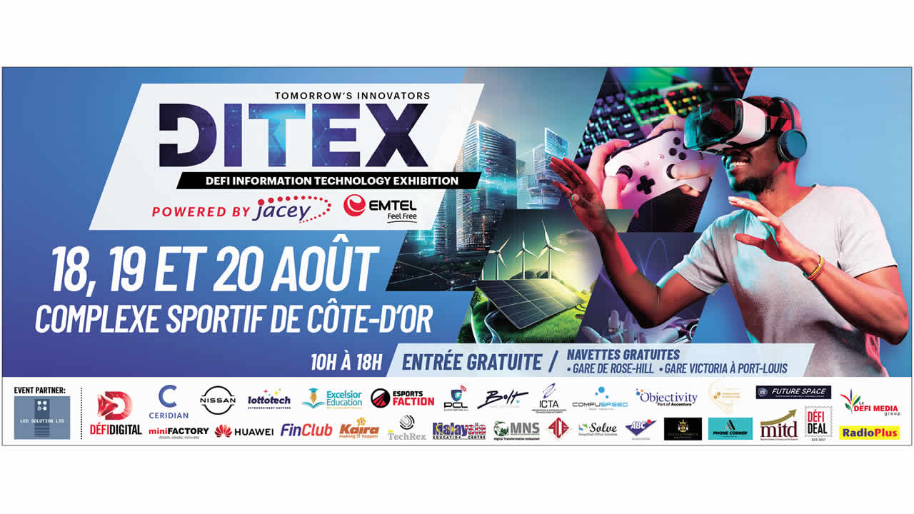 L’exposition DITEX s’annonce sans conteste comme l’événement technologique de l’année. Organisée par Le Défi Digital, en collaboration avec Le Défi Media Group et Radio Plus, elle aura lieu au Complexe sportif national de Côte-d’Or du 18 au 20 août 2023 de 10 h à 18 h. Cet événement, ayant pour partenaires Jacey et Emtel, entre autres, promet d’être une source d’inspiration pour tous les passionnés de high-tech.