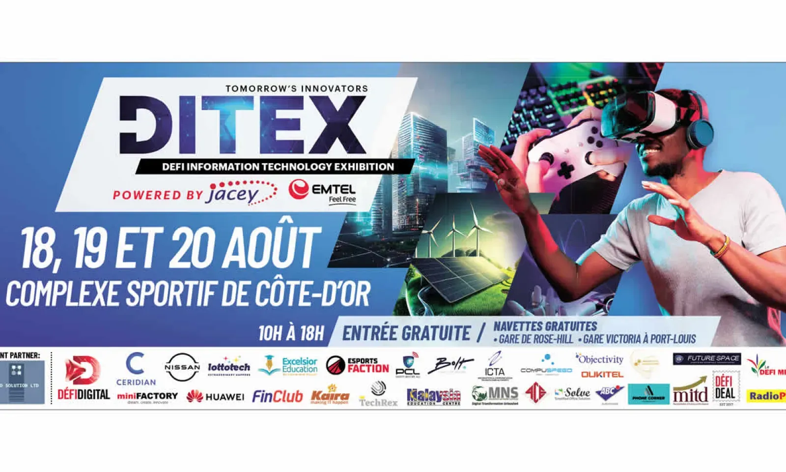 Préparez-vous pour l’événement incontournable de l’année en matière de technologie et d’innovation verte : Ditex Powered By Jacey et Emtel. Cette collaboration de premier ordre entre Le Défi Digital, Le Défi Media Group, Radio Plus et Led Technologies Ltd vous promet une expérience sensationnelle. Réservez les dates : 18, 19 et 20 août, de 10 heures à 18 heures, au Côte d’Or National Sport Complex.