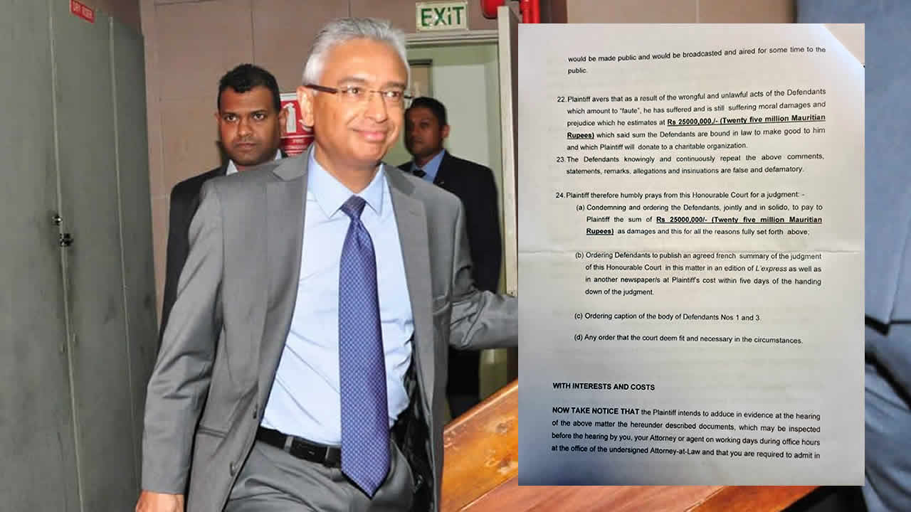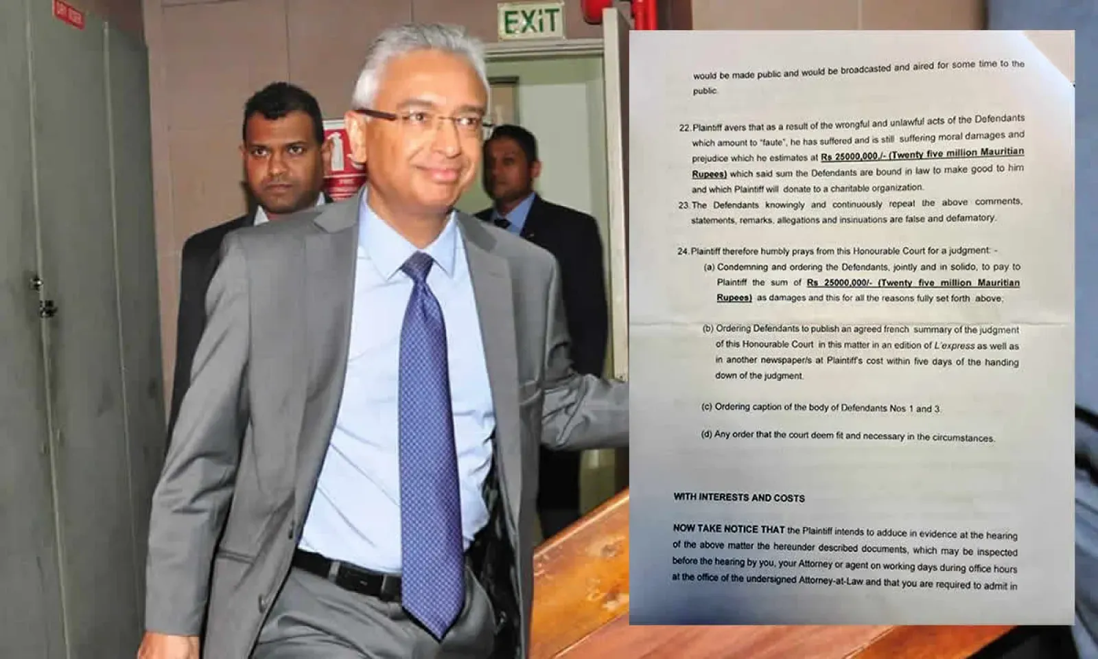 Pravind Jugnauth déclare qu’il a souffert et souffre toujours de dommages moraux, qu’il estime à Rs 25 millions. Une somme dont il fera don à une organisation charitable s’il remporte son procès en diffamation...