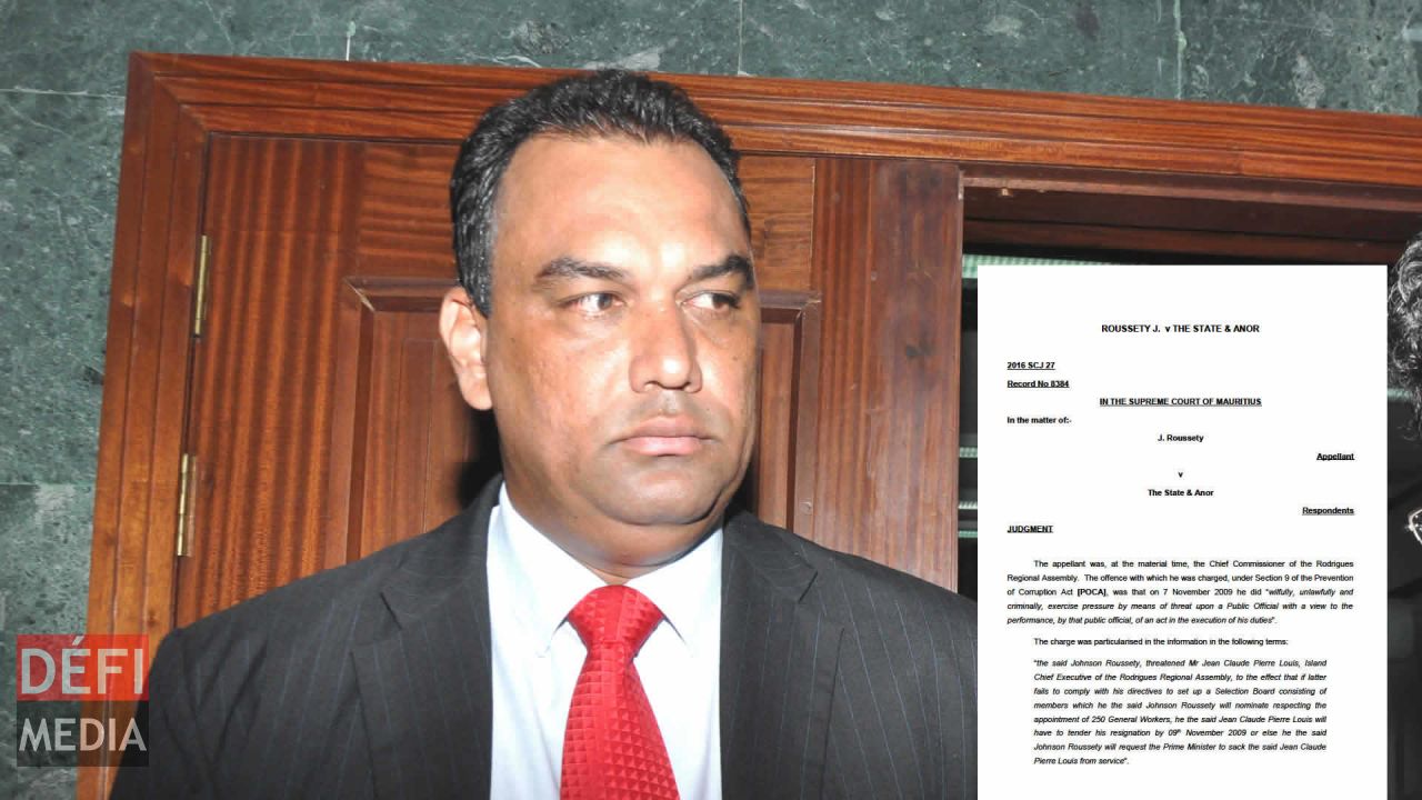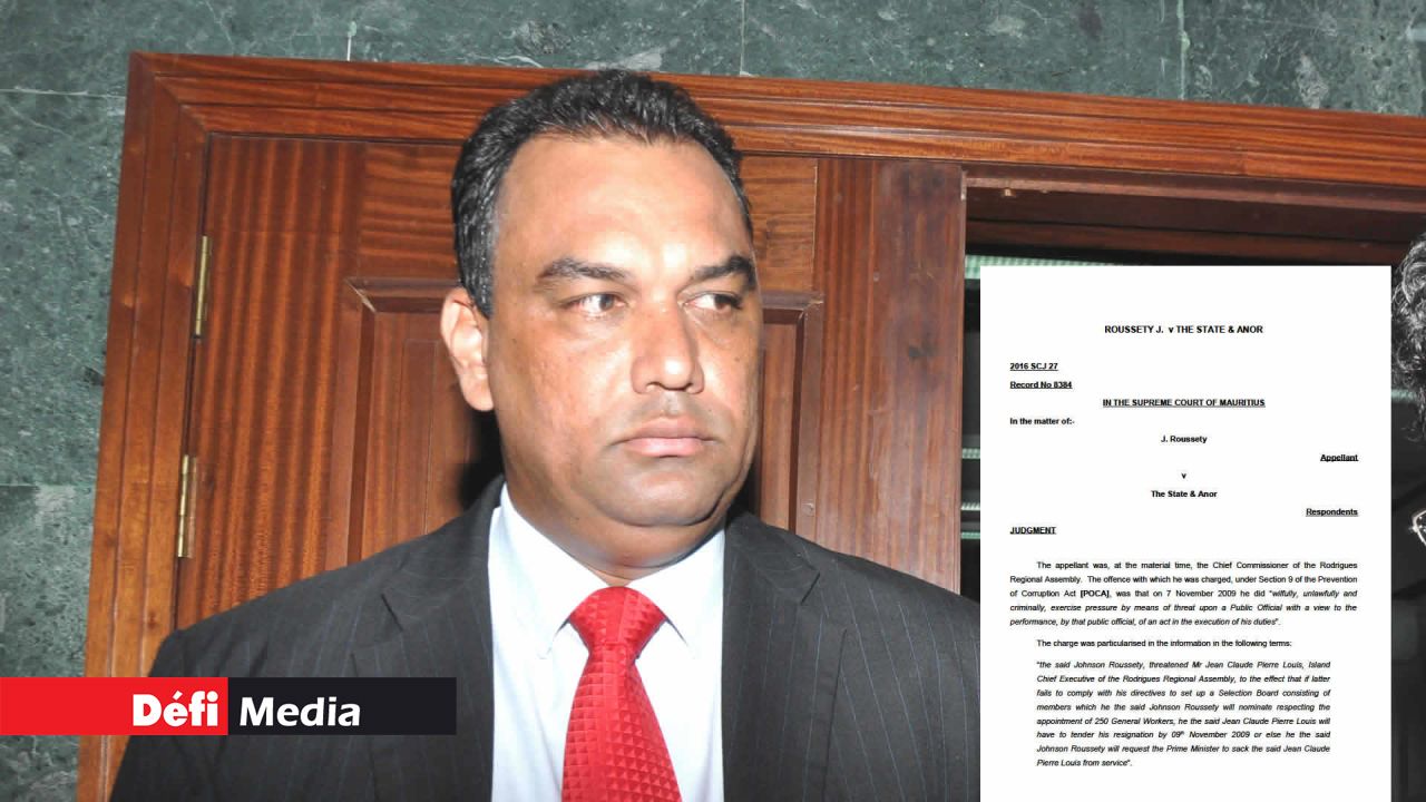Johnson Roussety était poursuivi pour avoir exercé des pressions sur Jean-Claude Pierre Louis, ancien Island Chief Executive de l’Assemblée régionale de l’île Rodrigues, dans une affaire de recrutement de 243 General Workers en novembre 2009.