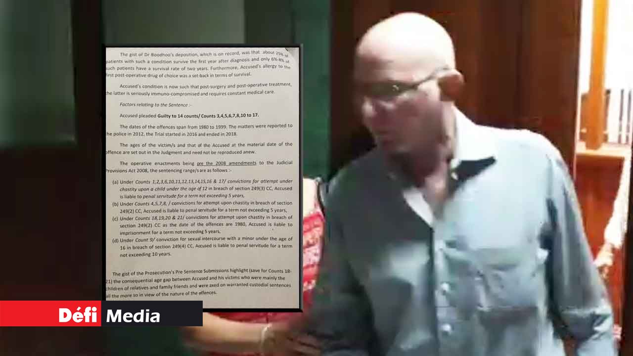 «After taking into consideration Dr Boodhoo's unrebutted testimony, the court is satisfied that the accused's illness is to be considered as a life-threatening ailment which would warrant the imposition of a lesser sentence as an act of mercy», a écrit la magistrate dans son jugement.