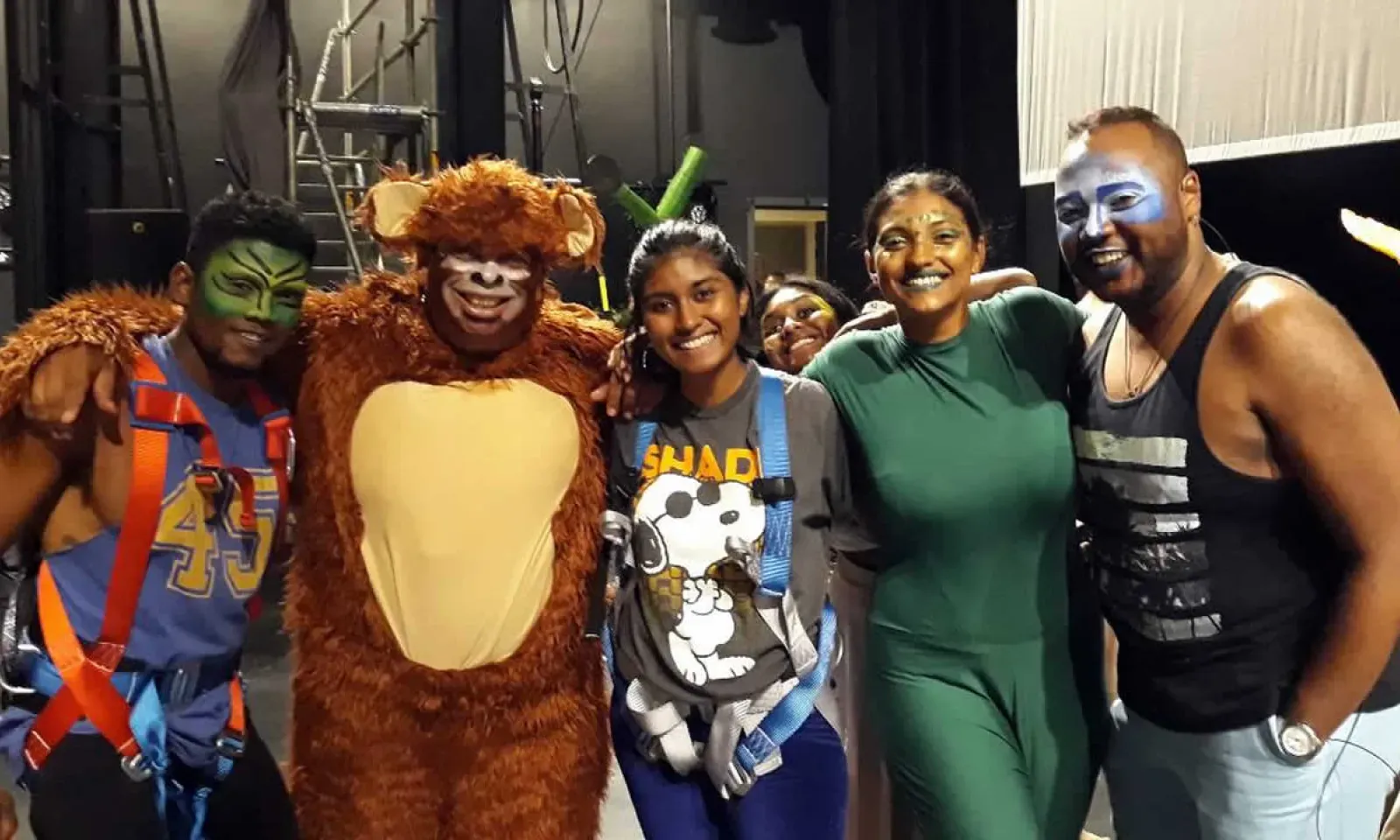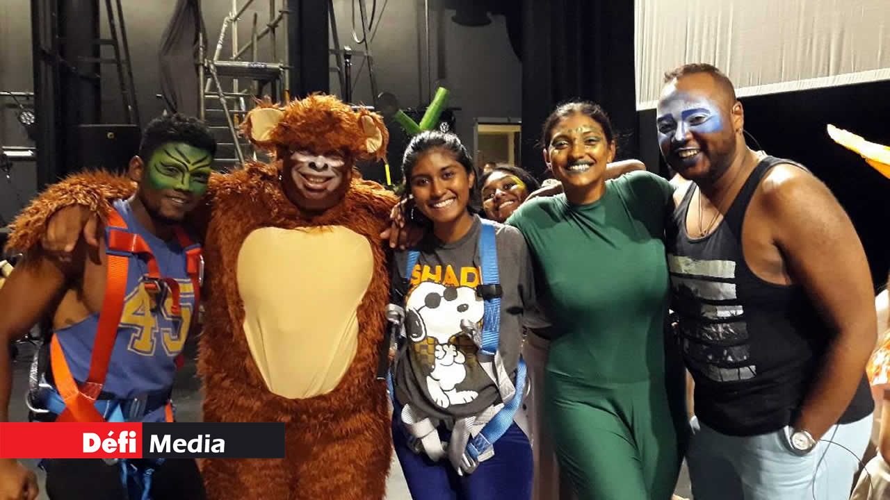 Fleurs exotiques et forêt tropicale, le décor nous laisse immédiatement bouche bée et nous plonge dans l’ambiance mauricienne. Nous vous emmenons derrière le rideau dans les coulisses où l’équipe de professionnels s’active à tout mettre en place. On observe Gris-Gris qui enfile sa carapace de tortue et Berthie Prosper qui interprète le chef singe dans la loge des maquilleurs pour une dernière petite retouche. Dans cinq minutes, les répétitions du spectacle vont commencer et on observe au loin Louis le Dodo qui a fière allure dans son énorme costume bleu.