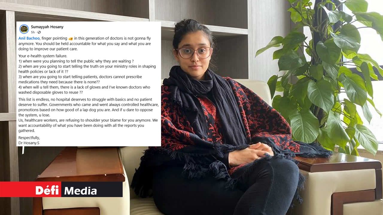La doctoresse Sumayyah Hosany sort de ses gonds. Dans une publication sur sa page Facebook ce samedi, elle a critiqué le ministre de la Santé, Anil Bachoo. “Anil Bachoo, finger pointing in this generation of doctors is not gonna fly anymore. You should be held accountable for what you say and what you are doing to improve our patient care”, a-t-elle écrit.