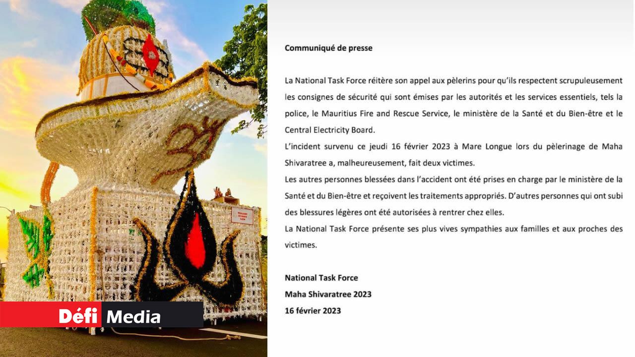 Voici un communiqué émis par la National Task Force après le drame survenu à Mare-Longue jeudi ; drame qui a fait deux morts.